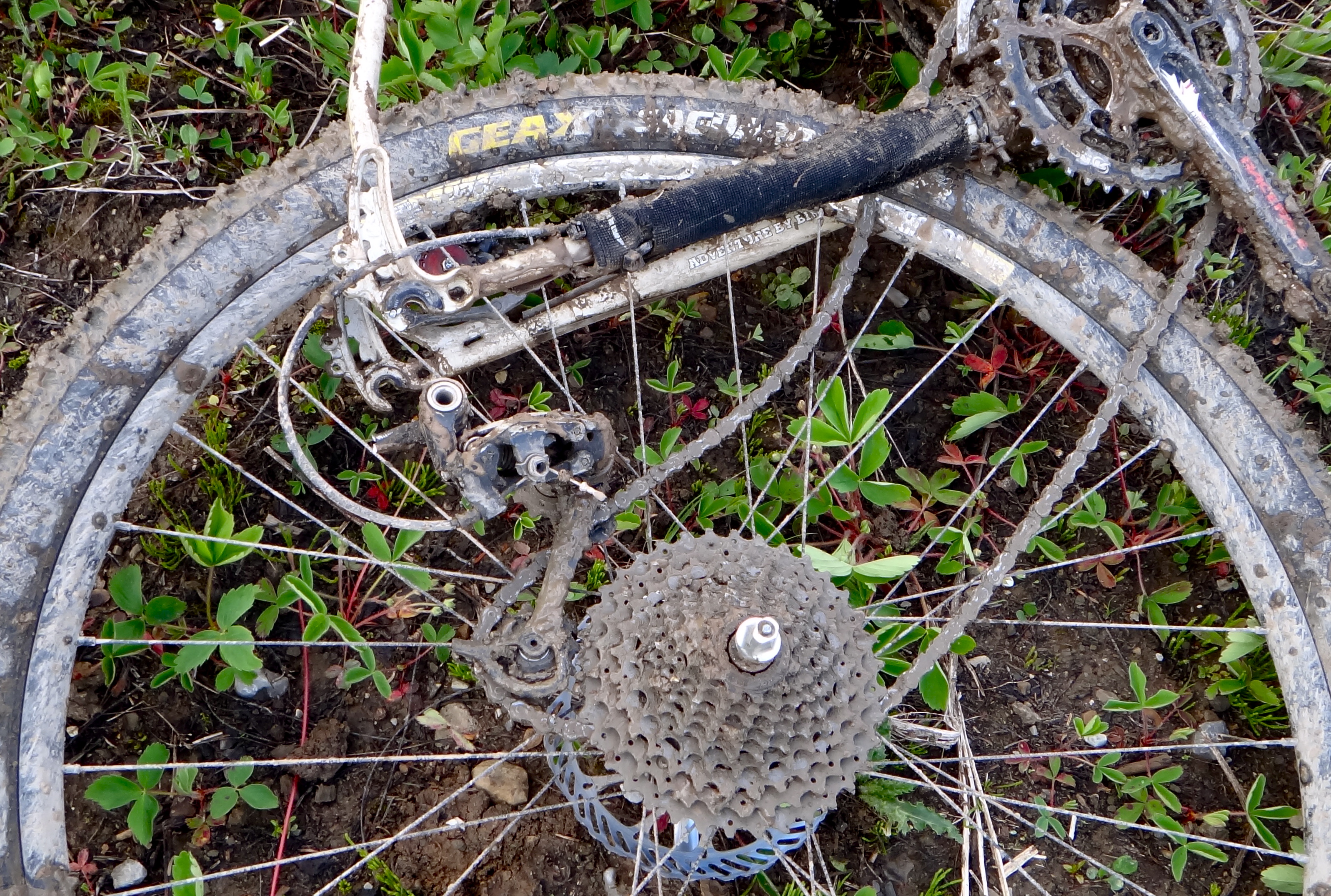La salita è faticosa ma costante, non presenta tratti micidiali o troppo ripidi da percorrere. Rimango con Jesse, chiacchierando del più e del meno, mentre Liam si stacca, non arriva più! Al colle lo aspettiamo ma non vedendolo arrivare io decido di partire, tanto i due australiani sono più veloci di me in salita in genere, e mi riprenderanno di lì a breve. Percorro circa 3-4km da solo quando, attraversando una zona piuttosto fangosa e appiccicosa, dopo una sfortunata cambiata sento un rumoraccio provenire dalla ruota posteriore… rotto il forcellino! Ho il cambio a penzoloni e mi viene alla mente il fatto che mi ero dimenticato i ricambi in negozio e che li avevo caricati sabato sera alle 18, prima di chiudere lo scatolone! Ringrazio Dio di non averli lasciati a casa e sistemo la bici… Intanto Jesse e Liam passano, dico loro di andare senza problemi e che ci saremmo visti più avanti.