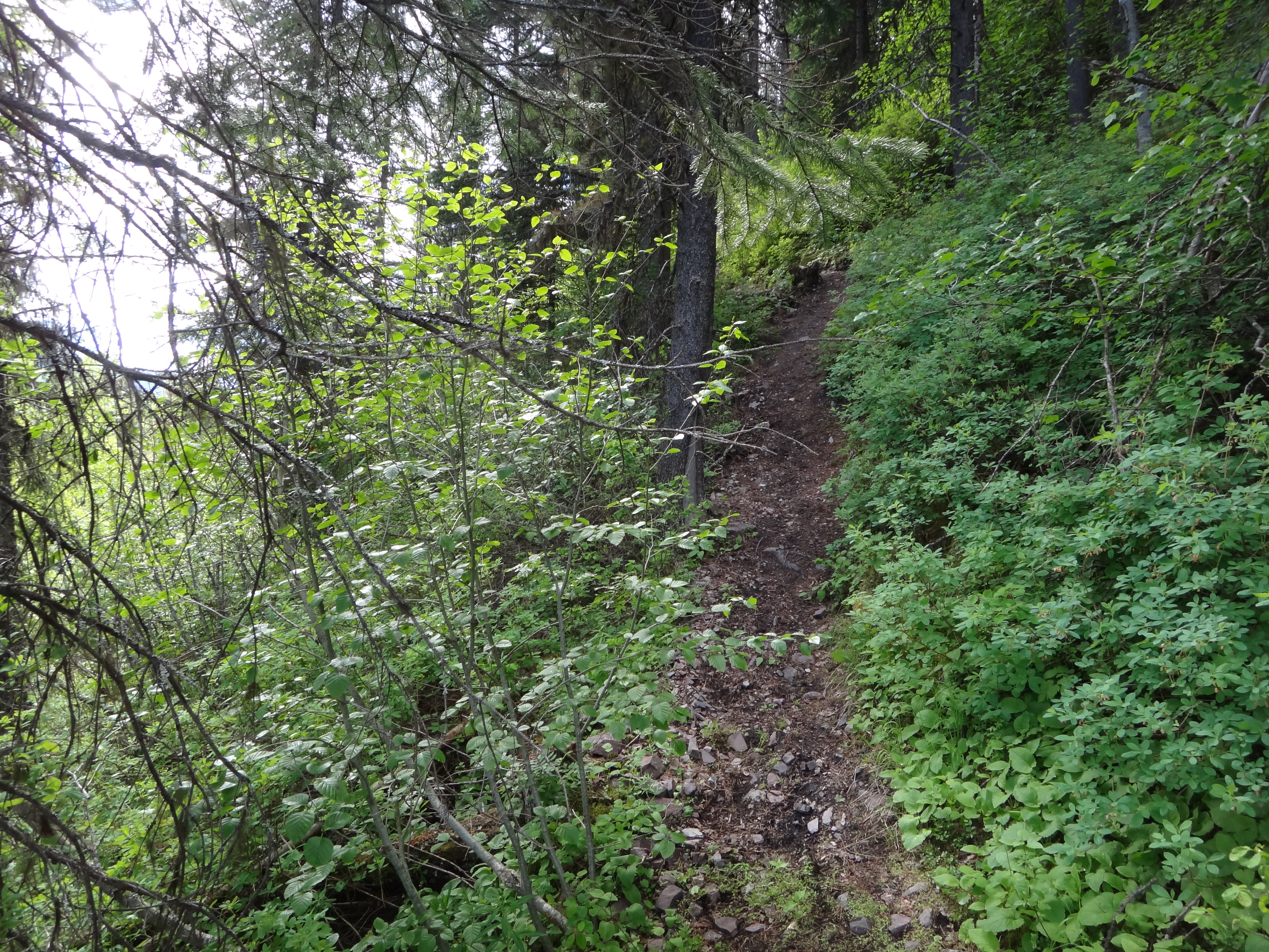 il sentiero che si inerpica nel bosco, verso il Galton Pass