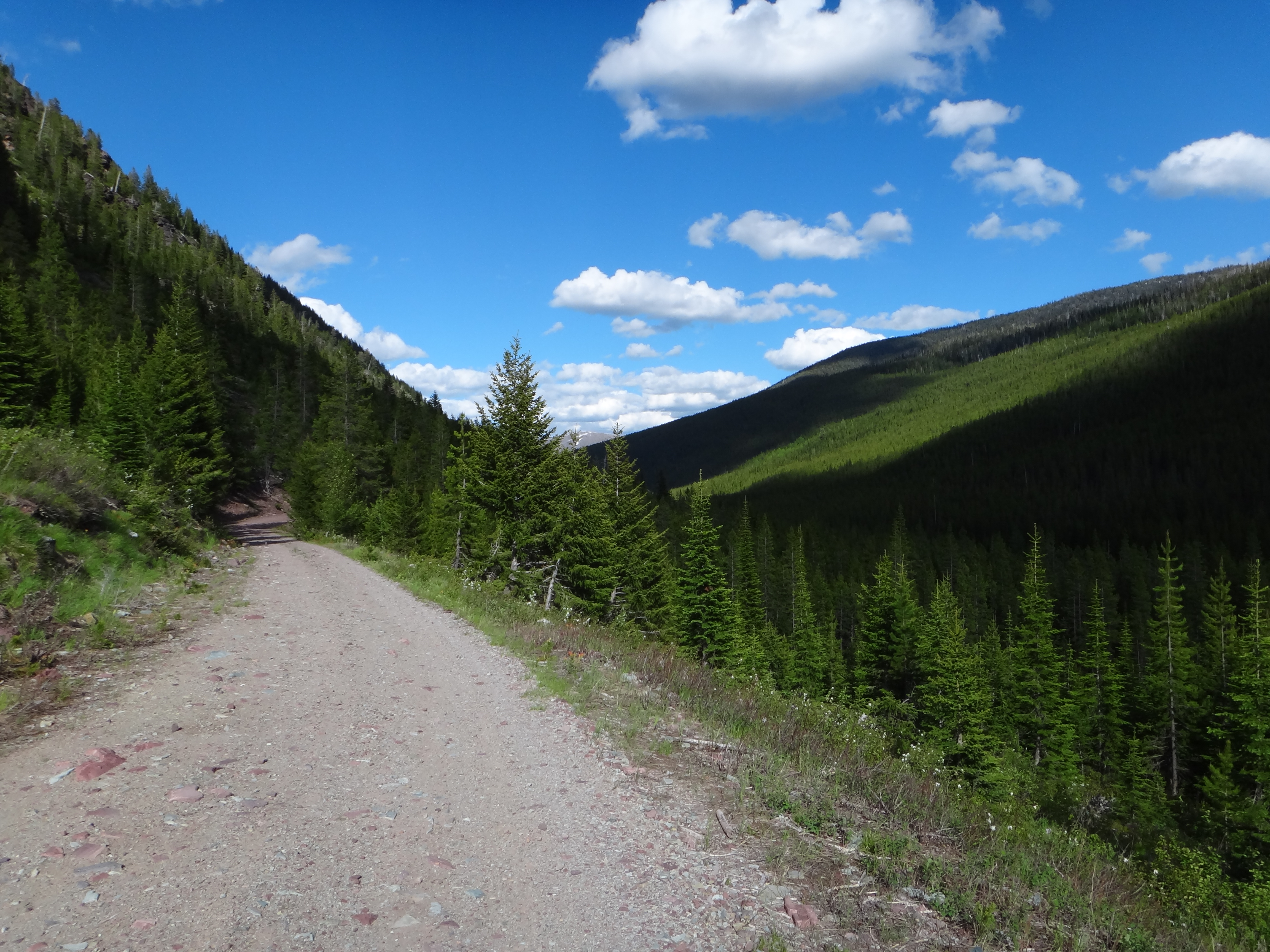 Appena fuori città, in direzione Columbia Falls, mi rendo conto di aver sbagliato a declinare l’invito per la notte… Un susseguirsi di proprietà private, villette e cancelli mi fa capire che non troverò un posto tranquillo dove montare la tenda. Cerco un motel, 5 miglia fuori rotta, ma è chiuso e non trovo traccia di uno sportello notturno per chiedere una stanza. Idem il campeggio segnato in mappa… Non lo vedo! un pò spazientito e preoccupato proseguo. Vedo sulla mappa che di lì a poco inizia uno sterrato… “vuoi che non trovi un posto su una poderale?”. Passo così anche oltre Columbia Falls sperando di trovare presto un posto dove accamparmi per la notte…