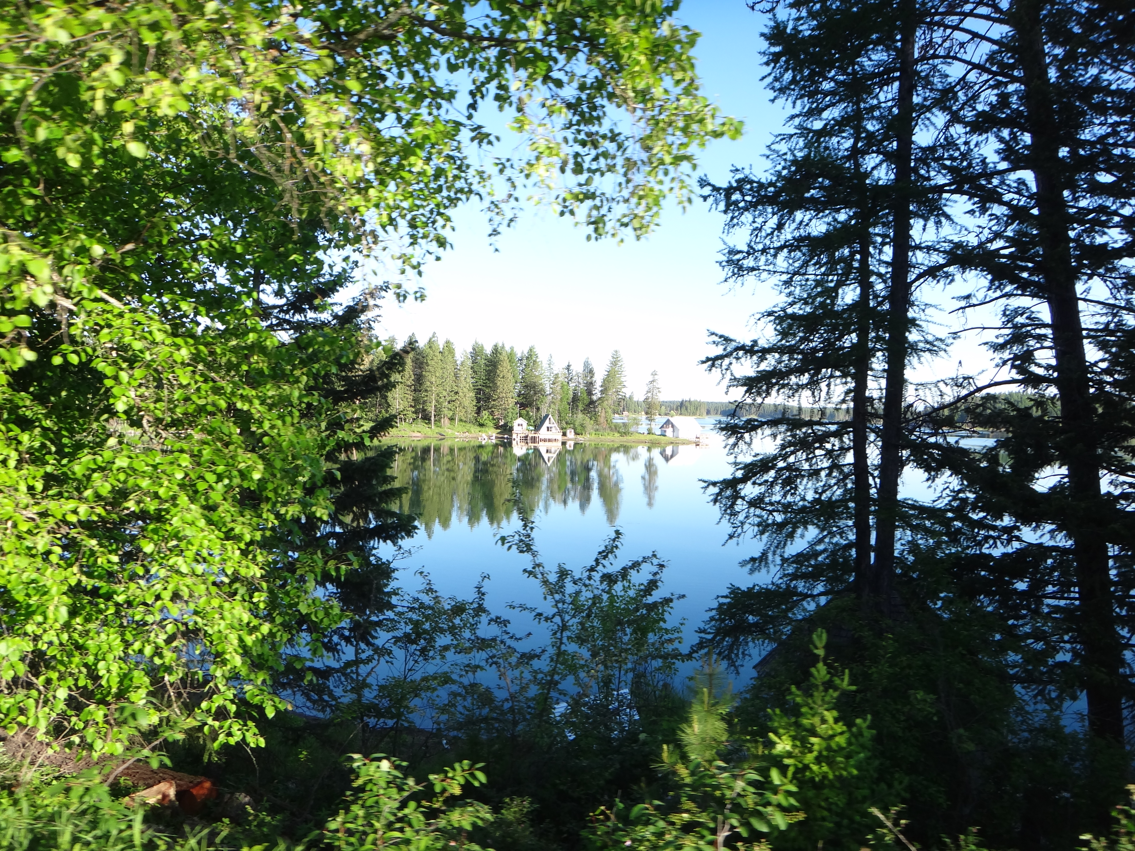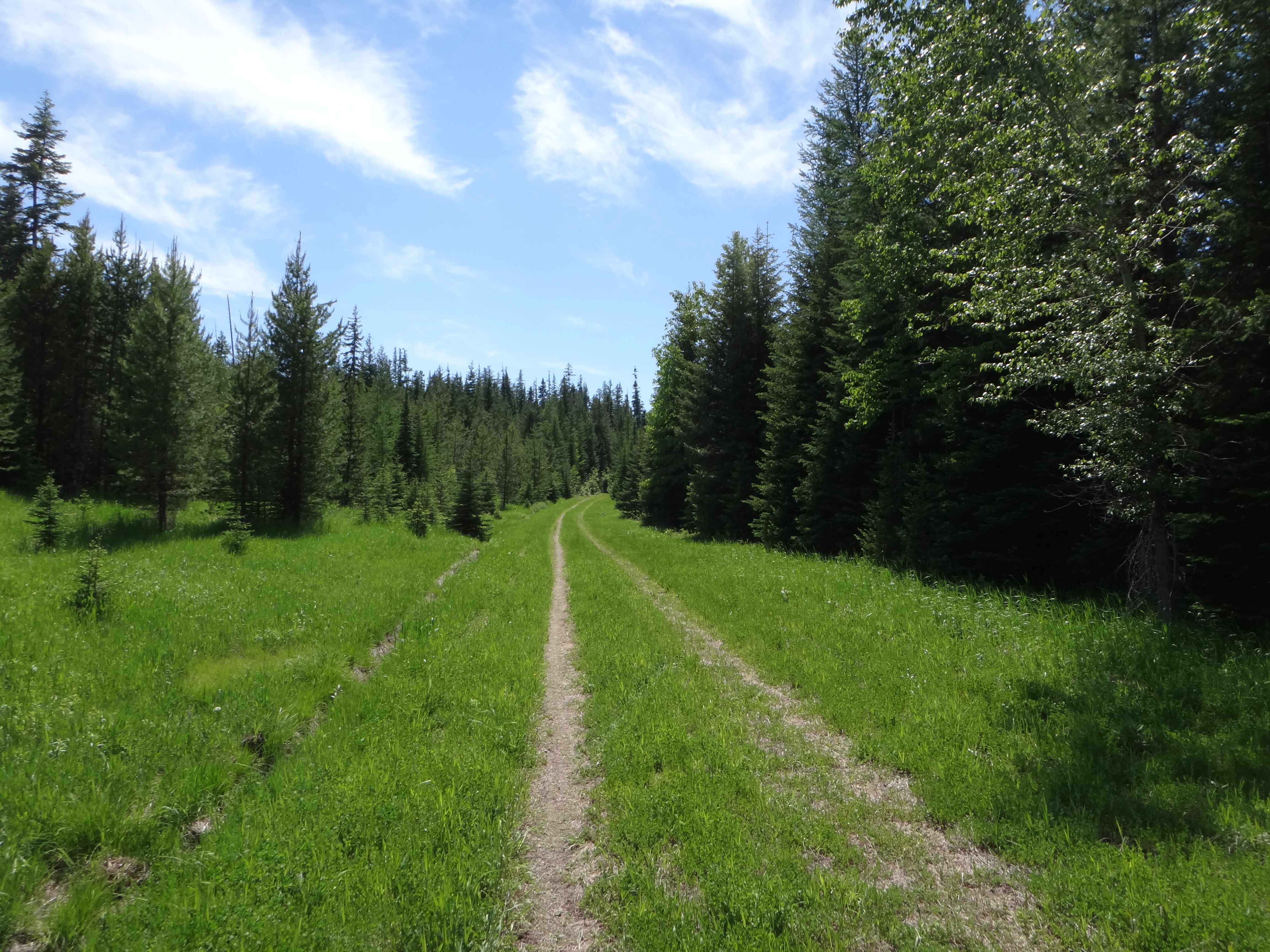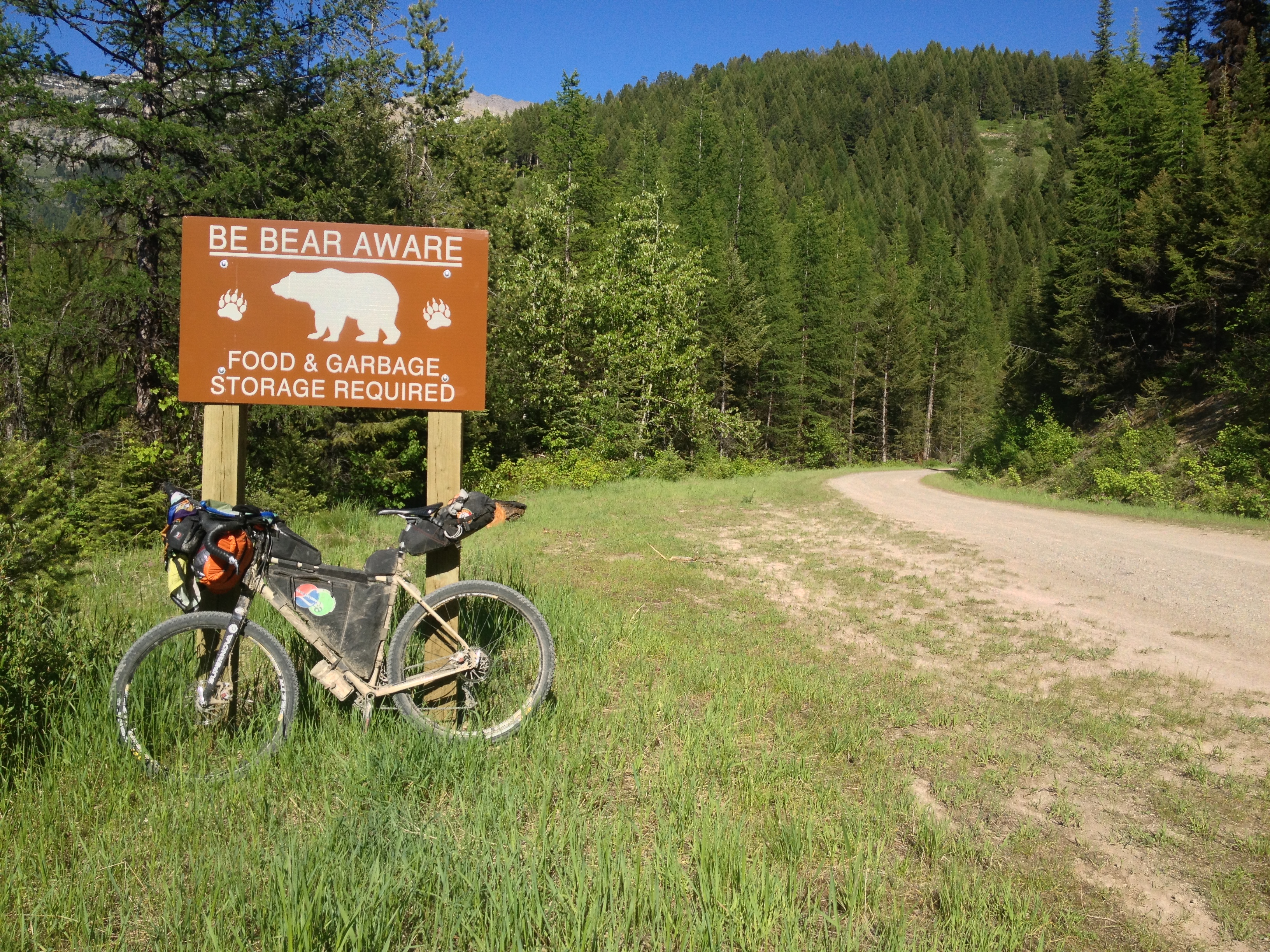 La strada è ancora in ombra e fa piuttosto fresco a quest’ora del mattino, ci saranno 4/5 gradi e dentro il bosco non filtra alcun raggio di sole. Sono affamato e non ho nulla da mangiare con me, se non il vasetto di burro di arachidi; è domenica mattina e temo di non trovare nulla di aperto… Una ventina di miglia dalla mia partenza, saranno le 7 del mattino scarse, e a Swan River trovo un bel bar aperto! Mi ci fermo, mi faccio preparare un super Waffle con mirtilli, due tazzone di caffè… ci voleva proprio! Riempio il camelback e riparto con un umore migliore! la strada, anche oggi, sarà piuttosto lunga e impegnativa, ho in mente di arrivare a Lincoln verso sera… Ma da fare ce n’è, quindi, con molta pazienza, mi addentro nella Flathead National Forest e inizio a salire verso lo Swan Lake a 1500m di quota. Strada piacevole e scorrevole, per molti tratti sembra una delle poderali che percorro dalle mie parti… immerso nel bosco e senza vedere il panorama non avverto differenze! La vegetazione di latifoglie è simile alla nostra, mi sembra di essere a casa nonostante in realtà sia così distante! Passando da Ferndale noto che sulla mia cartina ho appuntato “next city 170km” quindi approfitto per un rifornimento di cibo e acqua e continuo per la mia strada. Sulla mappa sembra tutto abbastanza facile, ma mi addentro in un bosco con continui sali-scendi, anche durissimi e ripidi. Alzandomi sui pedali per dare riposo e tregua al fondoschiena inizio a sentire il tendine di achille sx che punge e, soprattutto, avverto un dolore strano alla caviglia destra… Cerco di non forzare ed evito di alzarmi sui pedali; cerco più agilità e rallento un pò il passo in salita. Non c’è fretta, la strada è ancora molto lunga!