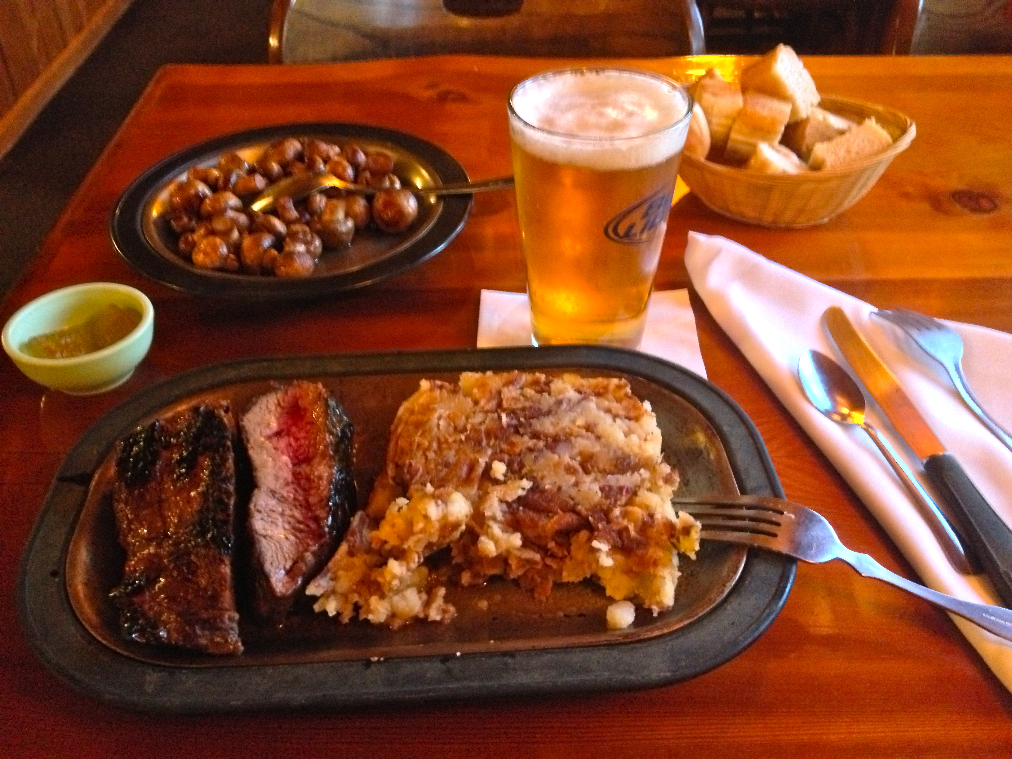 Compro del cerotto adesivo, trovo un motel e un ristorante. Mi concedo un pasto VERO dopo tre giorni, mangiando una squisita bisteccona con tortino di patate e funghi saltati, due birre medie, mi faccio dare del ghiaccio e mi ritiro in motel.