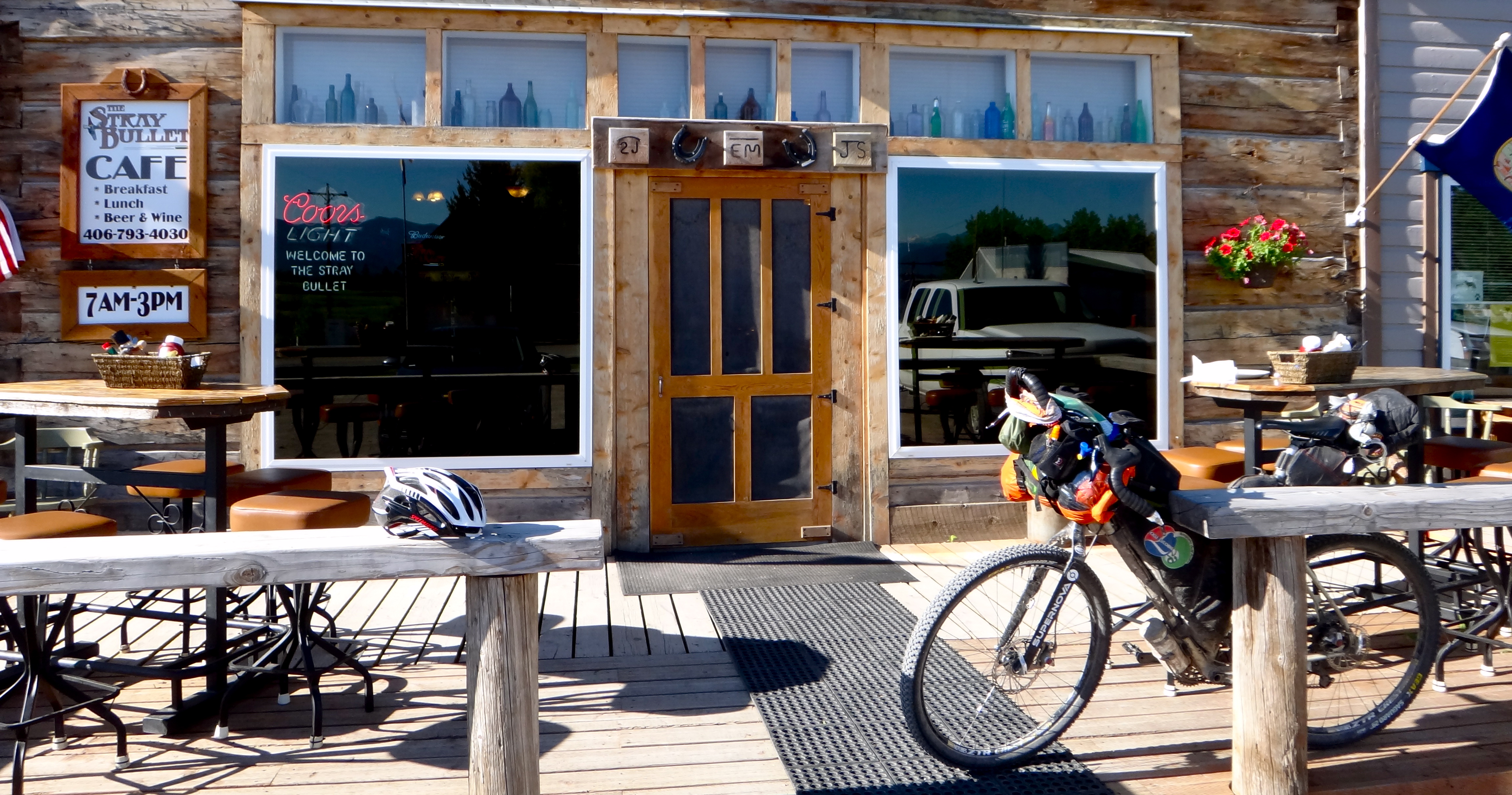 Trovato l’asfalto la strada è tutta in discesa fino ad Helena, ma un forte vento in faccia non mi permette da andare ad una velocità decente! Impiego un sacco di tempo per raggiungere la città, sono le 18.30 (e so che il negozio chiude alle 18.00) ma non mi preoccupo, il ragazzo del negozio via mail ha detto che mi segue con lo spot e che mi aspetta… Finalmente trovo il negozio alle 18.45 e ovviamente è chiuso… Ora, non dico che doveva tenere aperto per me, ma sei avvisato, hai lo spot, mi dici che mi aspetti… Io sarei rimasto in zona pronto a dare una mano al biker che ne avesse avuto bisogno ma, evidentemente, non tutti la pensano come me!