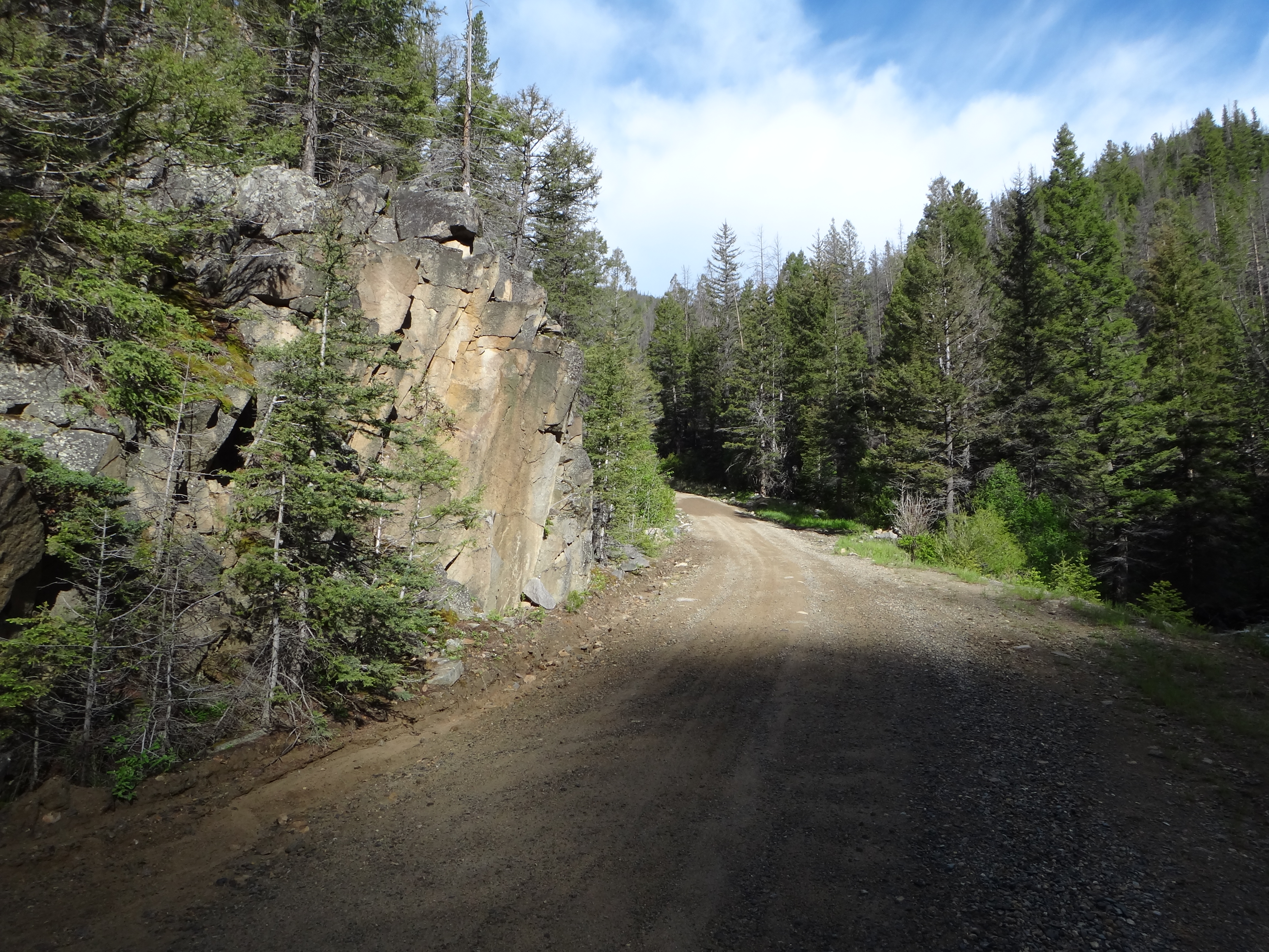 Il sentiero ora inizia a scendere, ma con lo stesso fondo insidioso. Ancora qualche tratto a piedi per non prendere inutili rischi e mi porto sulla veloce poderale che scende verso Basin. La strada è piuttosto veloce, la percorro sgranocchiando i miei salatini (di cui almeno la metà mi salta fuori dal sacchetto e finisce a terra) e arrivo a Basin che è ancora tutto chiuso; non ricordo che ora fosse, ma era presto. Faccio un pò fatica a trovare la strada corretta da seguire ma alla fine mi oriento (dopo un pò dietro front) e mi immetto su un drittone che odierò per le prossime ore. La sterrata costeggia una highway, sembra in piano ma non lo è. La velocità crolla, la fatica aumenta, non riesco a forzare, se mi alzo sui pedali le caviglie fanno male, se sto seduto mi fa male il sedere… Veramente non so più come fare per andare avanti, non ho soluzioni! Mi metto l’anima in pace a vado piano, più piano che posso… sembro una lumaca… Inizio ad avere fame sul serio e ne approfitto per una seconda “colazione” poi riparto ma appena arriva al sole mi rendo conto che sono troppo vestito: altra sosta! Di questo passo a Butte non ci arriverò mai!