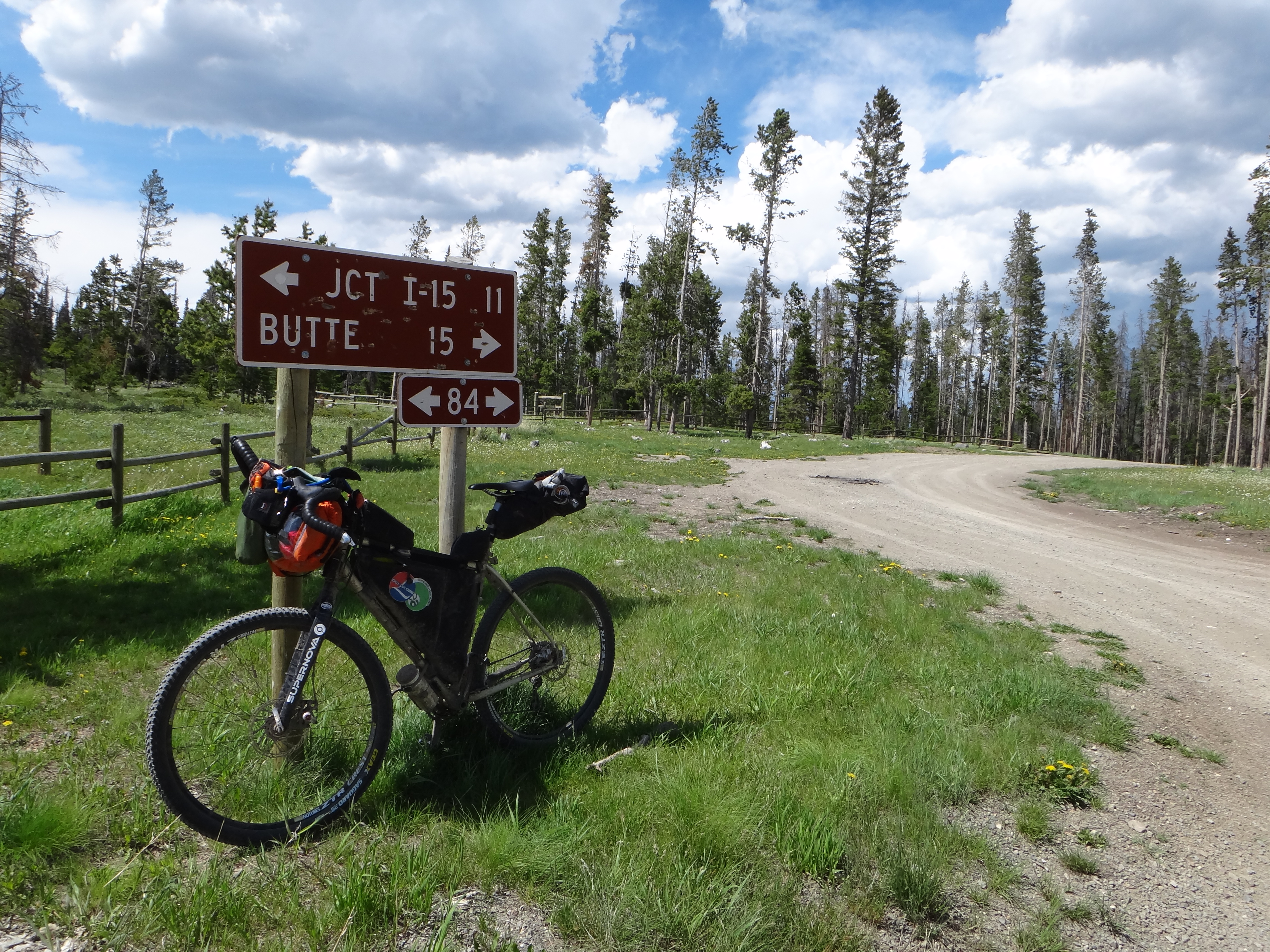Faccio caso alla quota, sono a circa 2’220 e l’elkpark pass è a 2400m, su asfalto: ma prima devo uscire da questo sterrato! Ancora un pò di saliscendi e finalmente sono sul lungo rettilineo asfaltato, convinto di riuscire ad aumentare un pò la mia velocità… Vento contro e il nero nastro asfaltato che sale e scende seguendo la morfologia delle colline su cui è appoggiato… Fatico in modo incredibile e non riesco più a fare forza sui pedali. Mi fermo una ennesima volta, provo a spostare le placchette dei pedali più indietro, non so più che fare! Riparto e mi sembra meglio, il dolore alle caviglie sembra alleviarsi e con il passare dei km sembra che se ne vada. Finalmente scollino e mi immetto sulla highway che mi porterà a Butte, finalmente in discesa… non do nemmeno un colpo di pedale e uso i pedali per fare stretching, per riposare un pò le gambe!