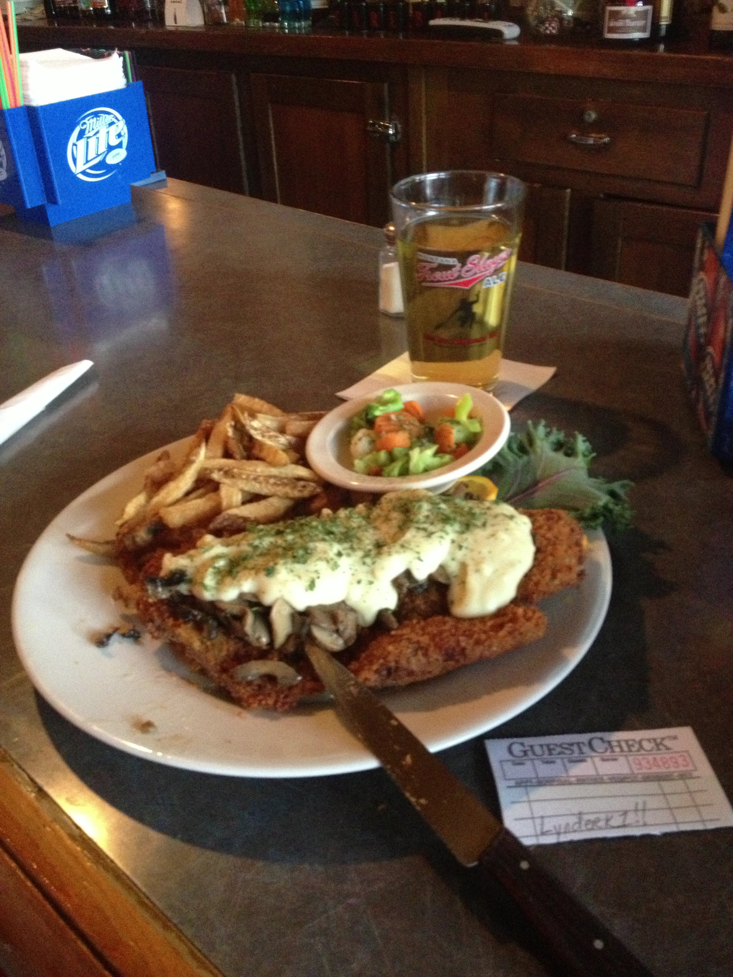 Sono di nuovo sulla strada poderale, finalmente col vento a favore e posso pedalare in scioltezza a velocità finalmente decenti, ma è sera, inizio ad essere affamato veramente! Per fortuna la strada per Polaris mi porta a Wise River dove (ovviamente) è tutto chiuso a quest’ora, tranne un bar: entro, ordino subito una (prima) birra media e poi mi coccolo con una bistecca esagerata, coperta di una salsa biancastra senza sapore, patatine e verdure, e una seconda birra media (ovviamente!). Nonostante sia affamato come un lupo fatico a finire la cena (ma la finisco) e mi avvio all’imbrunire verso Polaris, che dista 67km tutti su asfalto, in prevalente salita.