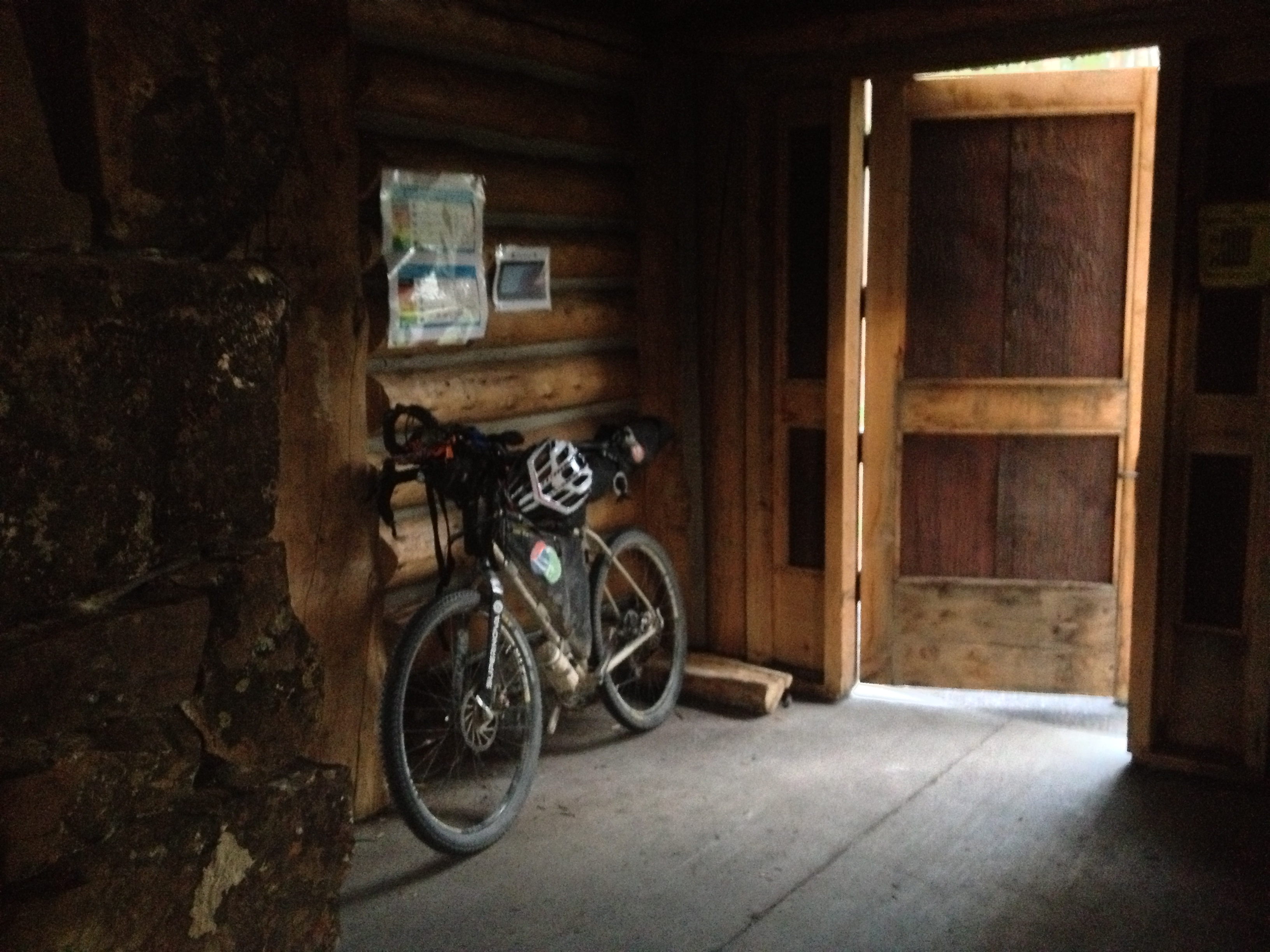 Dopo la sosta sembra di essere come nuovo, sistemo un pò meglio la posizione della sella e finalmente mi sento di pedalare in modo efficiente, sembra tutto a posto. Arriva il buio, la strada inizia a salire, salire , salire… Di nuovo devo arrivare a 2400m ma ormai è tardi  e inizio ad avere un sonno tremendo. quando sono le 23.30 mi sento veramente sfinito, non muscolarmente, ma mi sento come se potessi fermarmi e addormentarmi in 3 secondi netti. Ma voglio arrivare a Polaris per fermarmi, non resta che scollinare! Continuo a lottare ma i colpi di sonno hanno la meglio… chiudo e riapro gli occhi in continuazione, trovandomi spesso sul ciglio della strada. Troppo pericoloso mettersi a scendere in queste condizioni, il sonno non mi passa nemmeno se mi fermo qualche minuto a “sonnecchiare” a bordo strada, così decido di passare la notte prima della della discesa: trovo una cabin A Krystal park, a pochi km da Polaris, ma sono troppo bollito per proseguire, non ce la faccio più a lottare col sonno. Trovo la cabin in un bosco vicino alla strada. apro la porta (per fortuna è aperta) mi addentro, gonfio il materassino e mi infilo nel sacco a pelo.