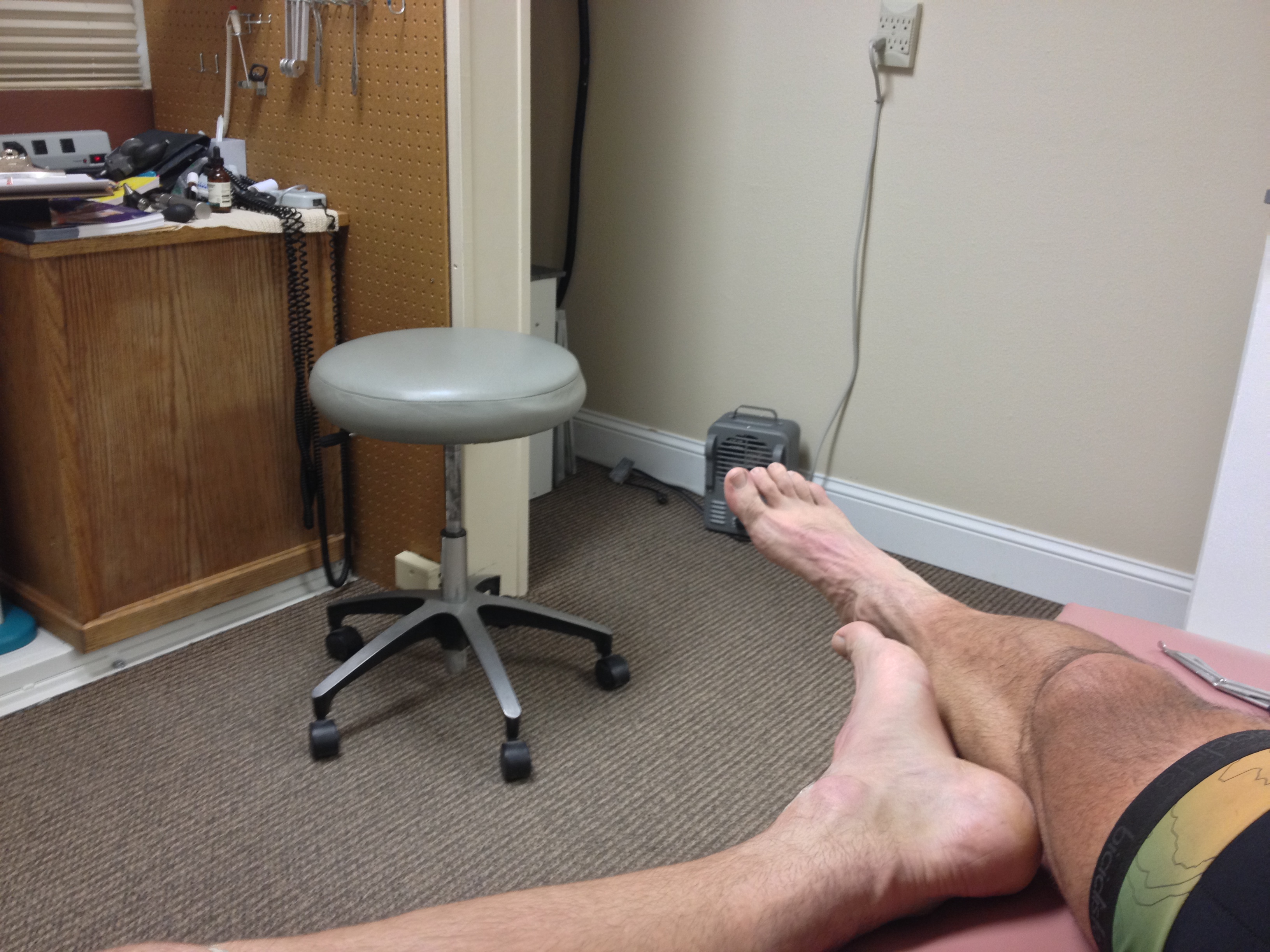 “bravo, mi piace il tuo ragionamento, io te lh’o detto perchè dovevo darti una opzione, però non piace nemmeno a me una soluzione così. Ti faccio un bendaggio fatto bene, poi provi a pedalare e vedi se va meglio”