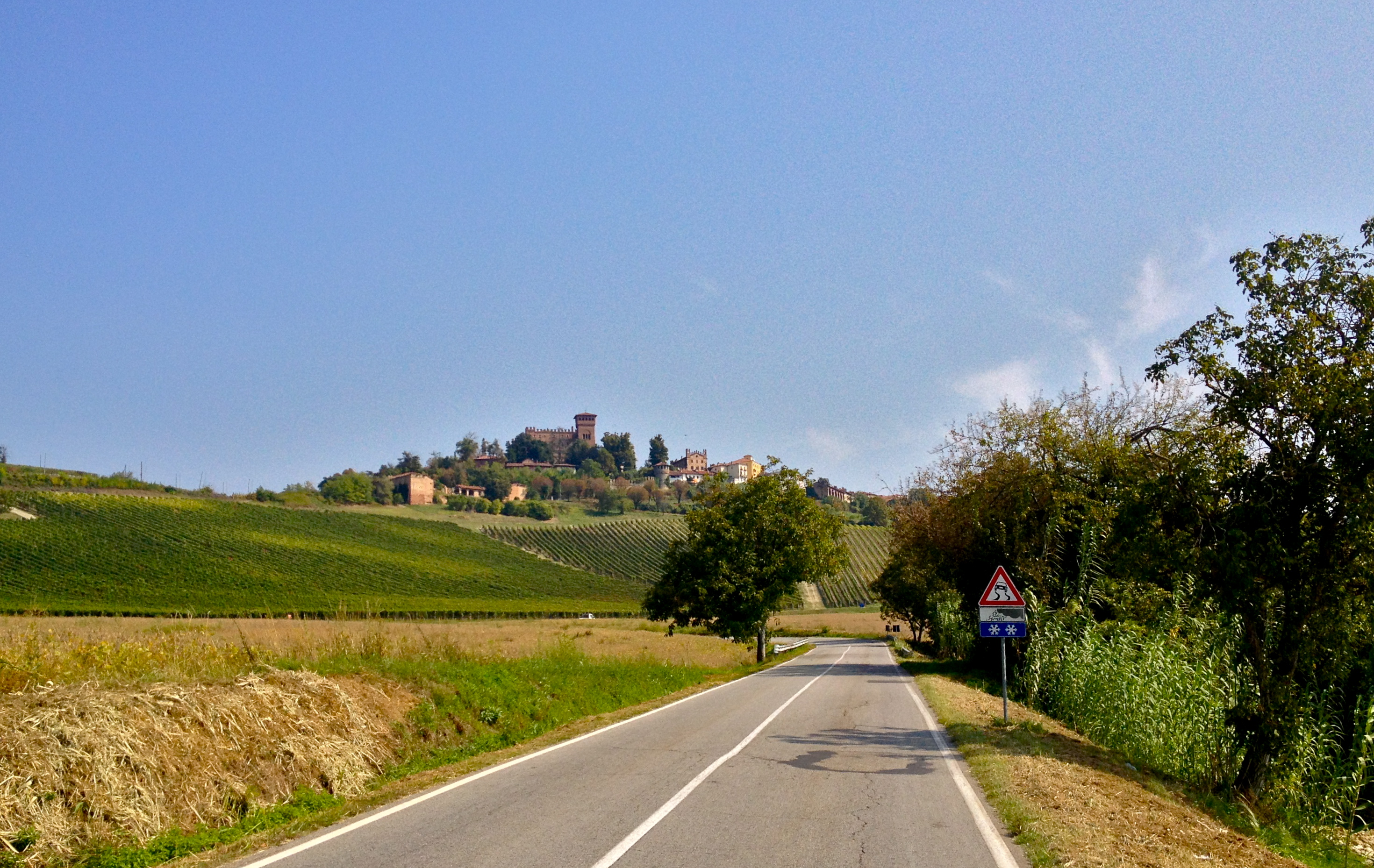 Dopo il piccolo e grazioso lago di Candia abbandono la traccia originaria per iniziare a percorre quella nuova che mi porterà a destinazione 8spero). Mi aspetto un sacco di rettilinei noiosi e pianeggianti, invece, a parte il tratto che nel vercellese mi porterà sul fiume Po, trovo brevi e ripide salite che si susseguono per oltrepassare le colline… Sono nel Monferrato, e la strada si continua a dimostrare divertente e molto panoramica. Mi guardo intorno, vedo il Po in lontananza, alla mia sinistra, che scorre lento e pacifico, mentre alla mia destra boschetti si alternano a campi coltivati, come le “rotoballe” che attendono che il contadino passi a caricarle. Mi piace immaginare la vita di campagna, i campi e i vigneti con i loro contadini al lavoro, penso che tutta l’Italia sia ricca di questi meravigliosi scorci e che solo la bicicletta ce li può svelare. Quando viaggiamo in auto siamo isolati dal mondo esterno, non odiamo il rumore assordante dei grilli, l’odore dell’erba appena tagliata o della terra umida. Non vediamo i paesaggi collinari perchè immersi in un nastro di asfalto a quattro corsie che ci fa percorrere la via più breve per giungere dal punto A al punto B nel modo più veloce possibile. Peccato. Rallentare e godersi questi momenti è una gioia per il cuore!