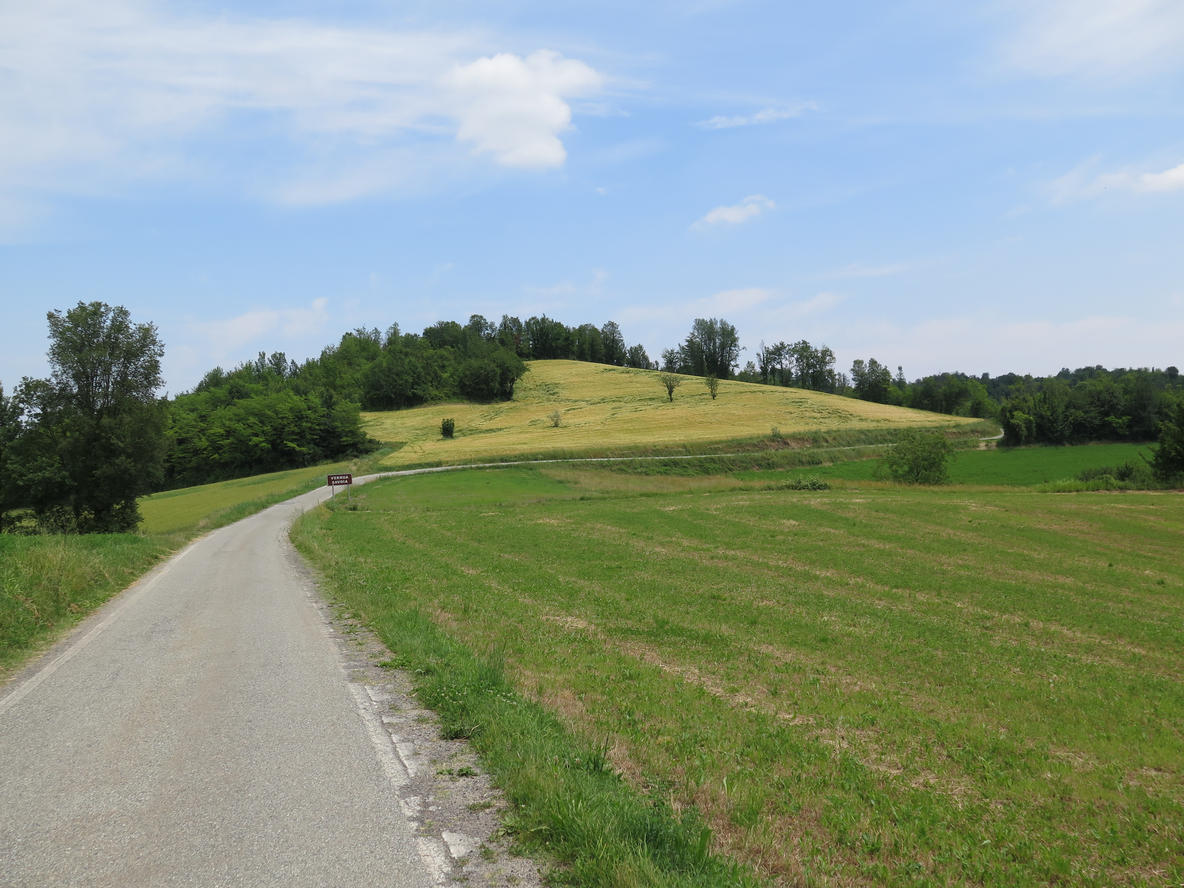 La serra della Valchiusella, verdissima e umida dalla pioggia della notte, la collina di Vialfré, Caluso, e gli interminabili rettilinei del Vercellese, ci hanno accompagnato per tutta la mattina ma, una volta attraversato il fiume po, il divertimento è iniziato alla grande! Subito dopo il ponte, infatti, una breve salita su una provinciale stretta e immersa nei campi di grano, ci ha accompagnato nel basso monferrato. Incredibile vedere un cambiamento di paesaggio così nel giro di poche centinaia di metri!
