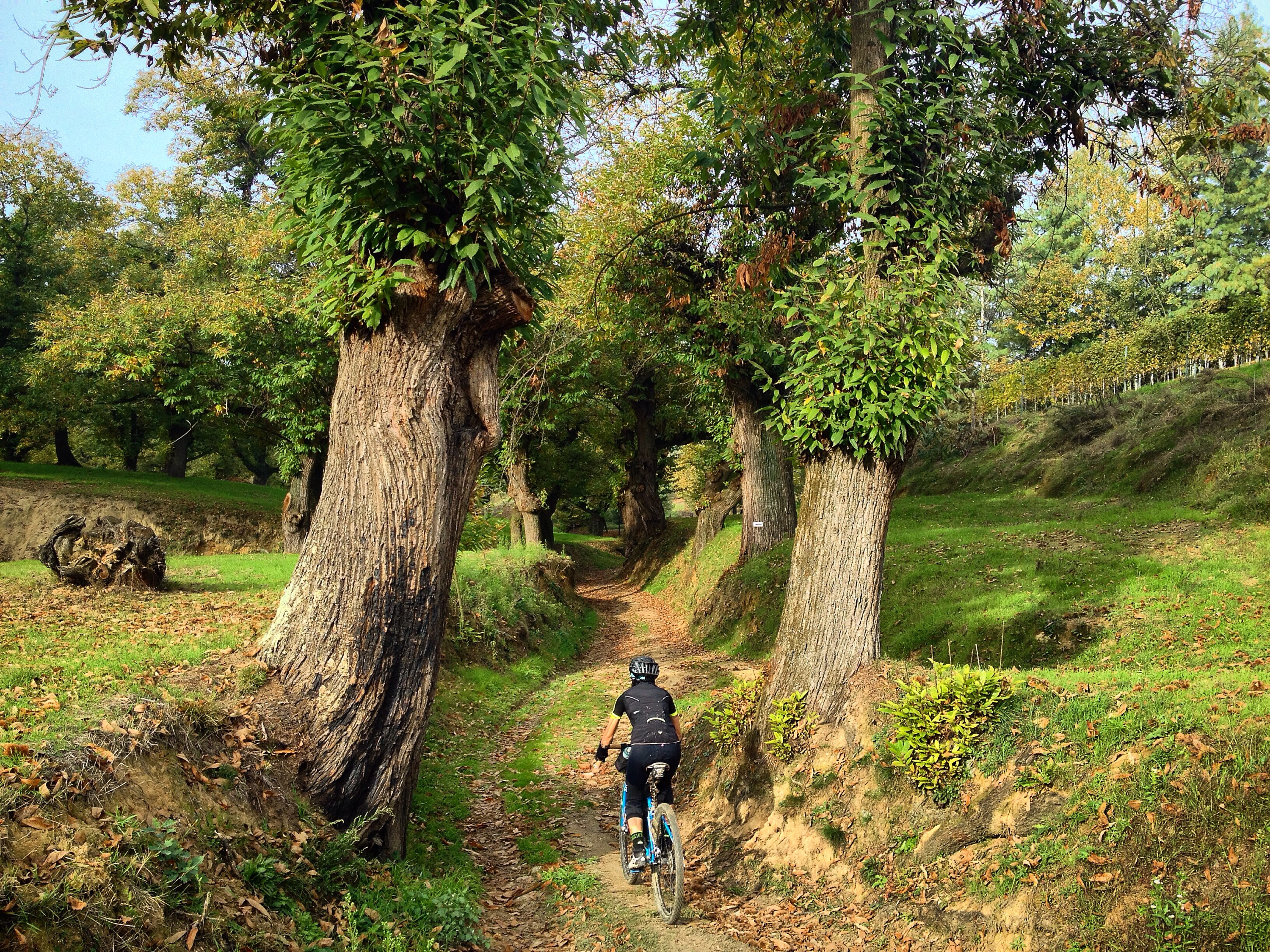 Un percorso stupendo, con passaggi indimenticabili in mezzo a castagni secolari e vigneti tinti di rosso e giallo sulle colline del Roero. Era evidente lo zampino del nostro amico Massimo Alfero, una persona che pedala il mondo per passione e per lavoro ma che ha ben chiaro in mente che l’avventura non serve cercarla in capo al mondo, basta avere “gli occhi giusti” per guardare e anche i posti di casa diventano incredibilmente affascinanti.
