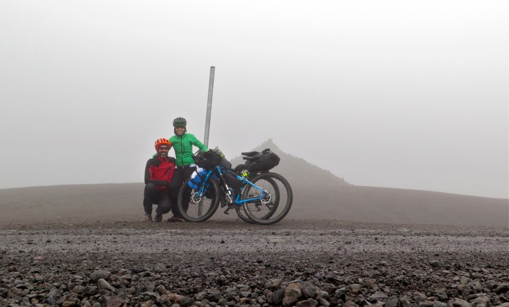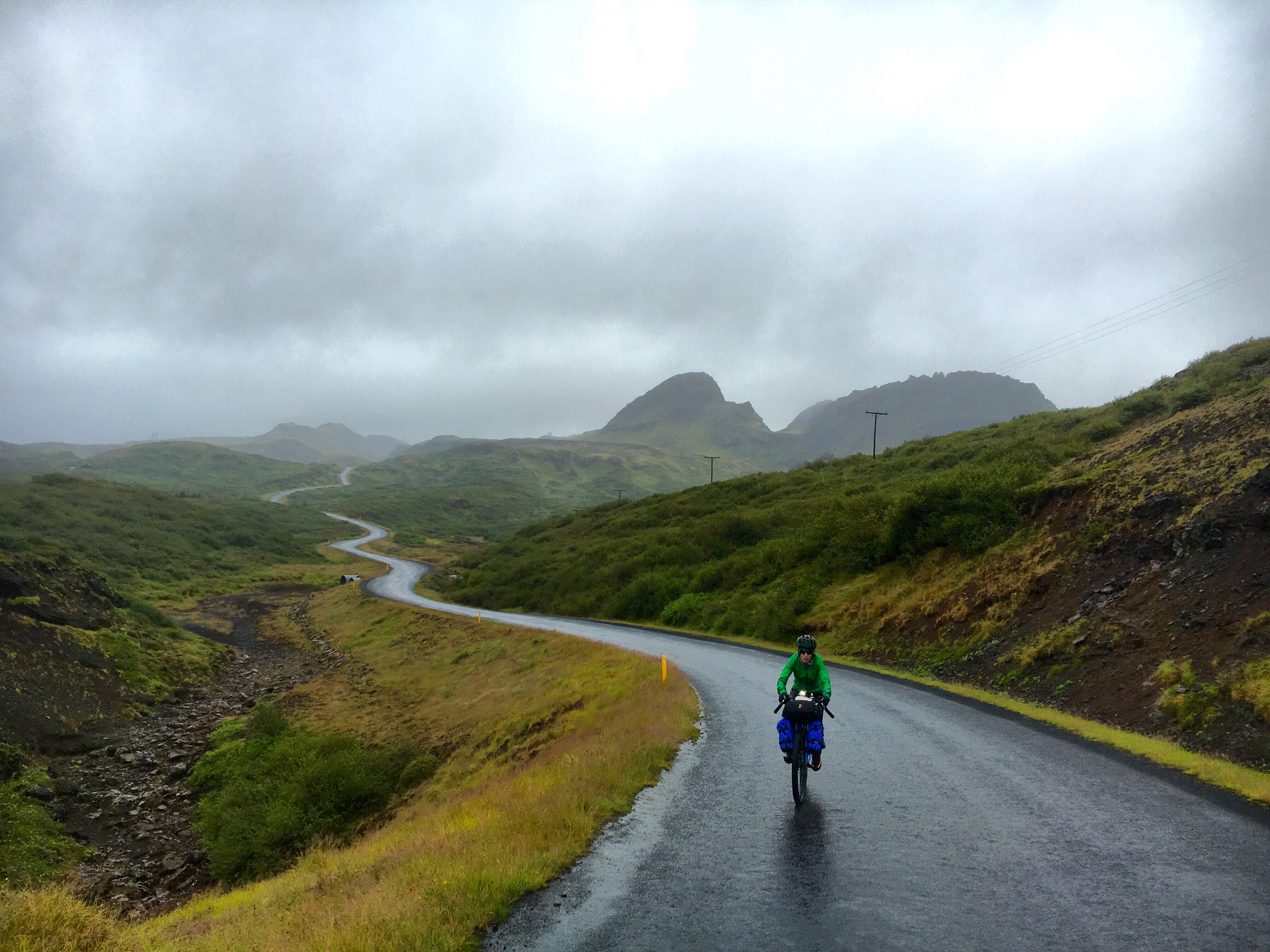 Puoi pedalare 11 ore sotto una pioggia battente preso a schiaffi dal vento, ma non puoi non ammirare le montagne che millenni di eruzioni hanno plasmato intorno a te.