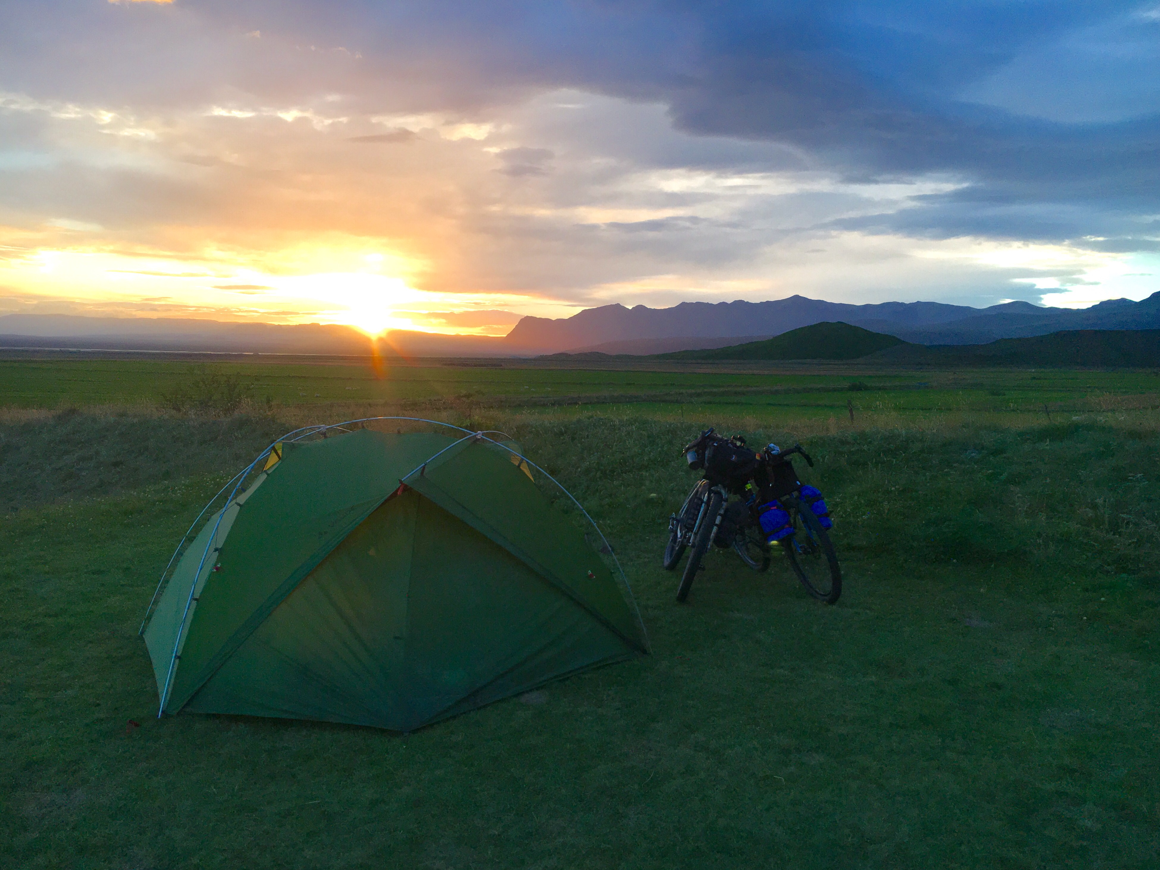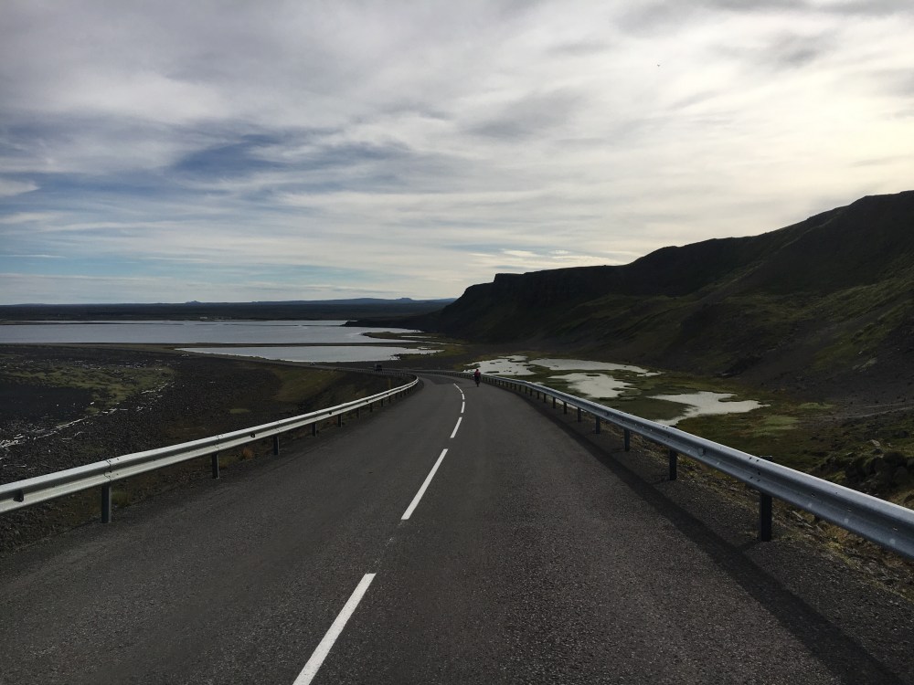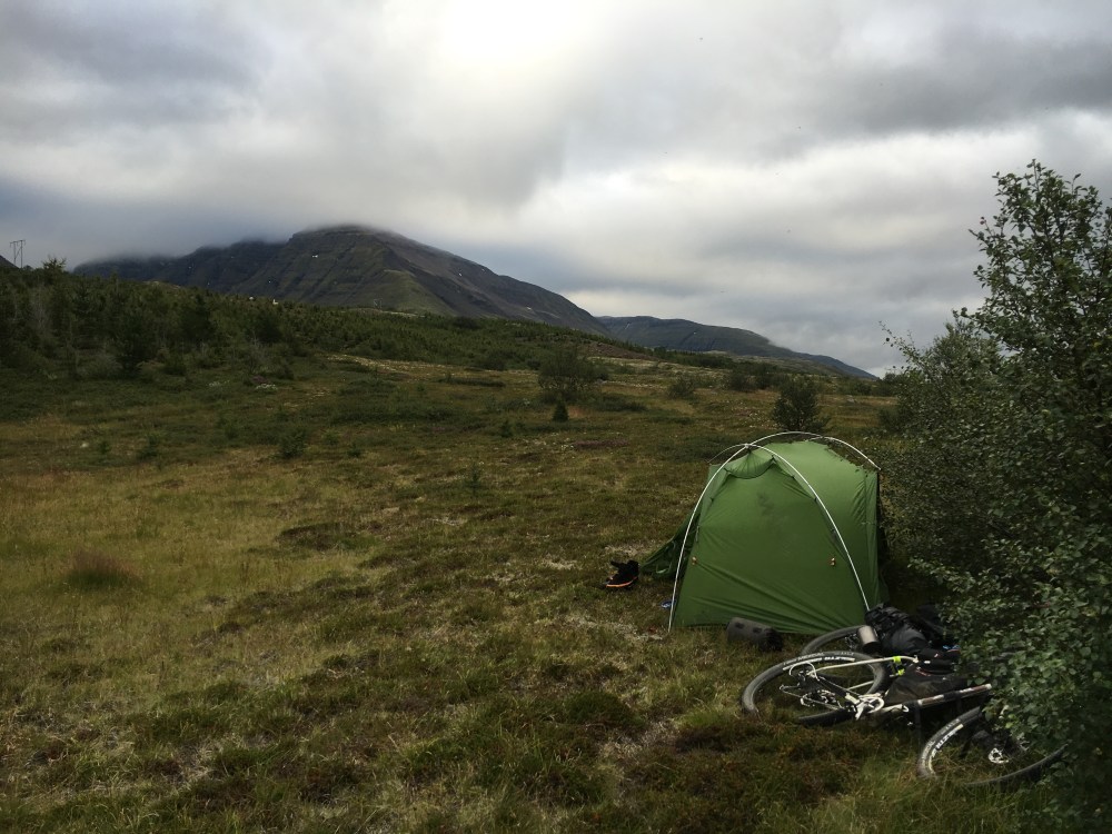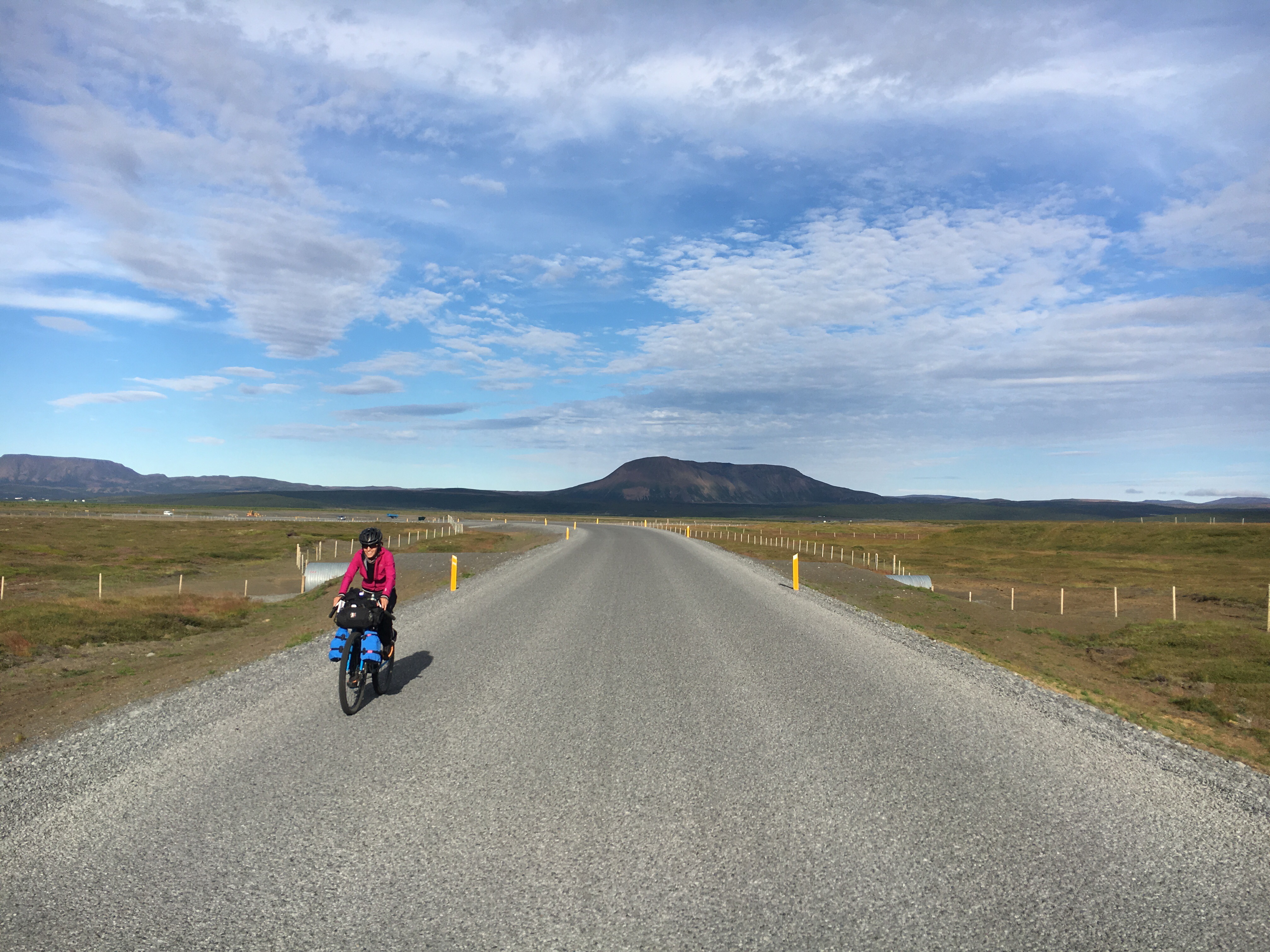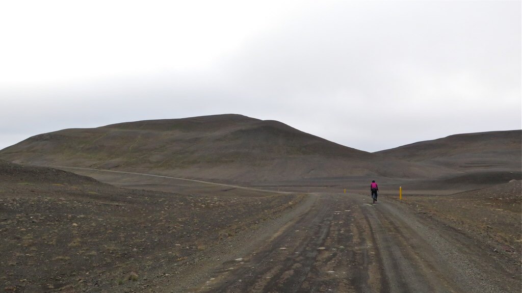 Ti risvegli in mezzo alla brina e riparti verso sud, puoi vedere da 12km di distanza lo sbuffo delle cascate più grandi di Europa, Dettifoss, e rimanere sbalordito dal fragore che l’acqua produce riversandosi sulle rocce quando arrivi al loro cospetto. Continui a pedalare verso sud, sulla ring road, ma la lasci dopo qualche km per addentrarti, ancora una volta all’interno, senza sapere bene dove, ma solo di non voler pedalare troppo asfalto, ma per la notte un campeggio ai piedi di fumose montagne ti accoglie.