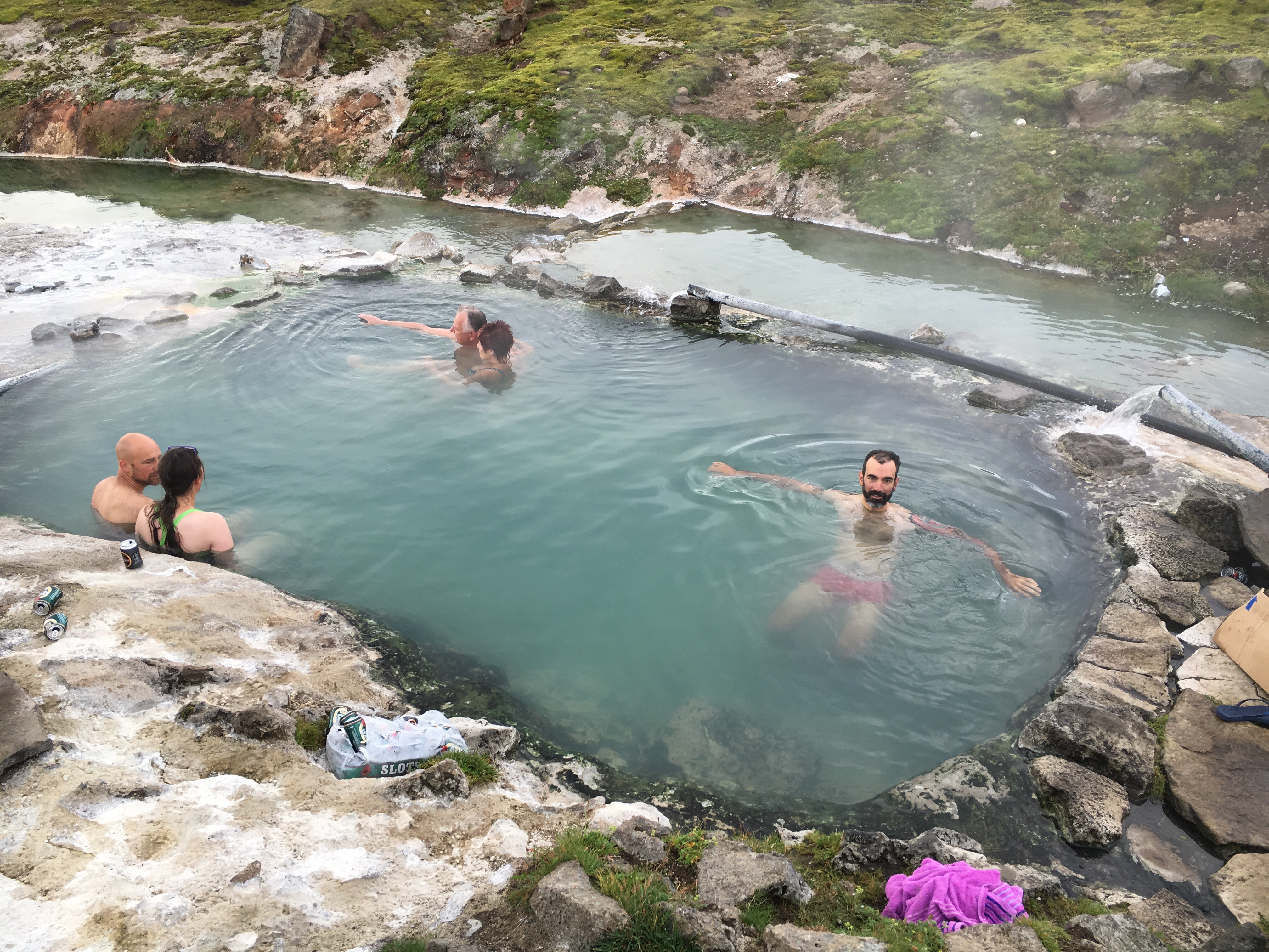 Se ti addentri negli altipiani interni ti senti piccolo così, circondato da enormi ghiacciai che formano laghi e fiumi, ma la strada sterrata (la pista kjolur f35) continua ad attraversare luoghi magici in mezzo al nulla, per portarti a Hveravellir, una piccola oasi nel deserto circondata da geyser e piscine di acqua bollente, a ritemprarti anima e corpo prima di ributtarti fuori, 100km più a nord, tra verdi pascoli, fattorie, manzi e cavalli allo stato semi-brado.