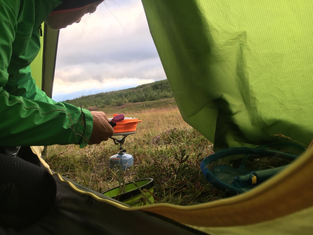Continui verso sud, passi Egilstadir, e ti accampi lungo la strada che tanto non avverti pericoli e traffico non ce n’è, bivacchi sotto le stelle controllato a distanza dai greggi di pecore, cucini qualcosa di caldo usando l’acqua potabilizzata prelevata dai piedi di una cascata, e ti lasci cullare dal vento in una fresca notte!