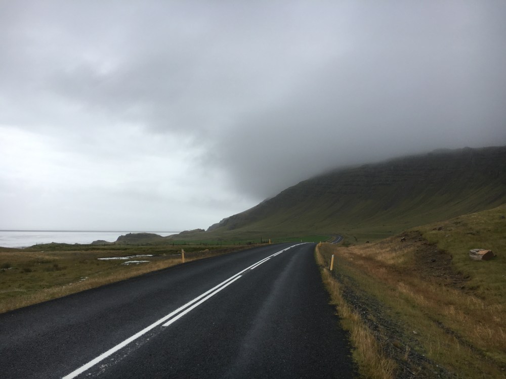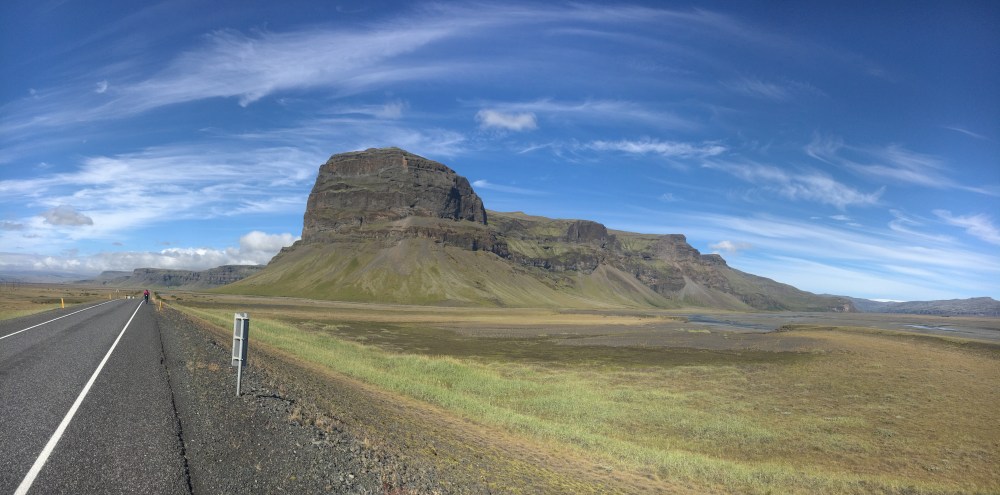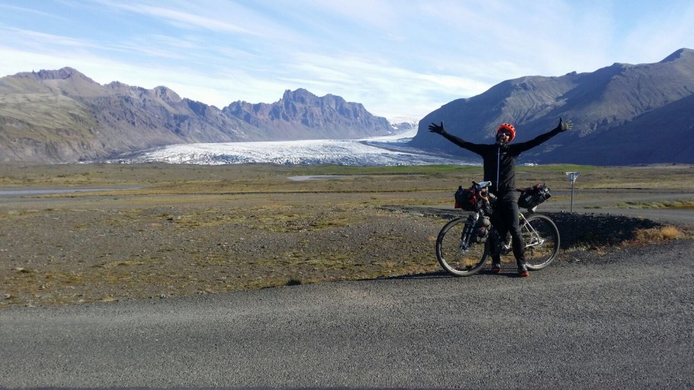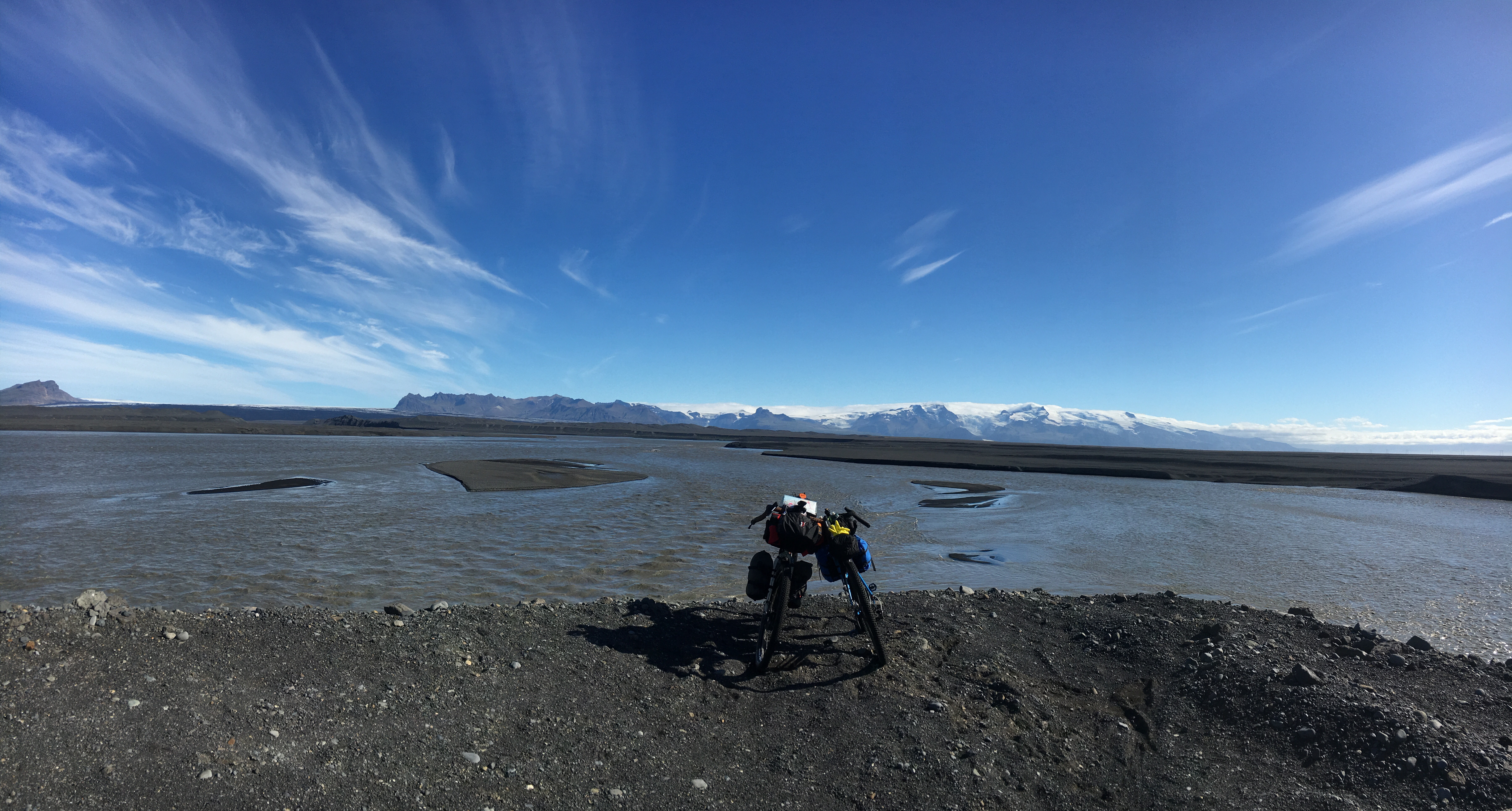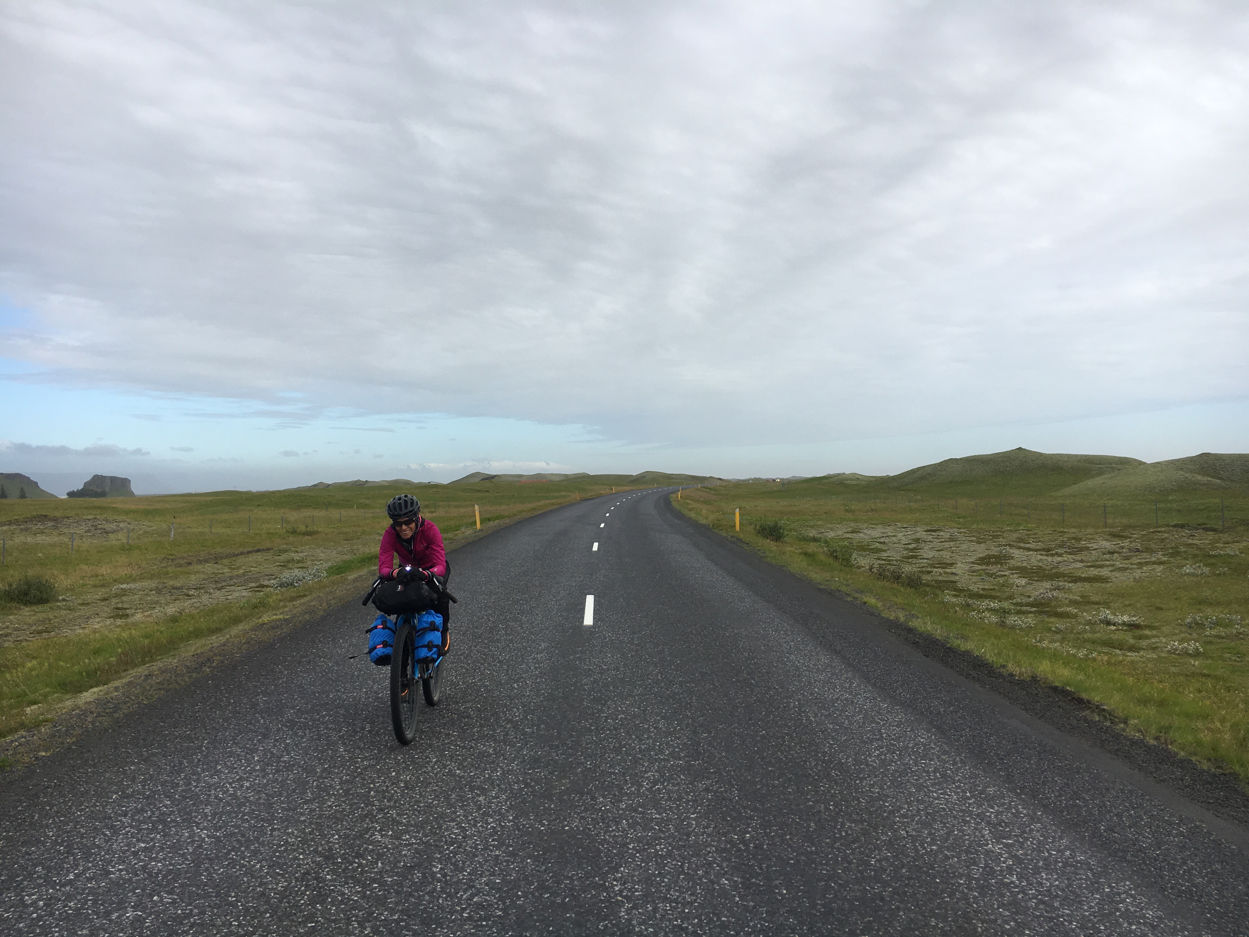 E l’indomani ti risvegli in salita, lungo una nuova sterrata, la 939, scollini sull’Oxi pass e vorticosamente, su una discesa a strapiombo sul fiordo, raggiungi la costa sud, dove un vento rabbioso ti spinge e ti frena ad ogni curva che affronti. Ma non smetti di pedalare e raggiungi Hofn dove con 7 gradi e un vento che sfiora i 40 km orari la gente del posto pedala in maglietta mentre tu batti o denti dal freddo, ma ti si scalda il cuore pensando a quei turisti inglesi in camper che ti hanno accolto a bordo per un caffè bollente e una fetta di torta mentre là fuori l’isola sembrava non volerti tra i piedi.