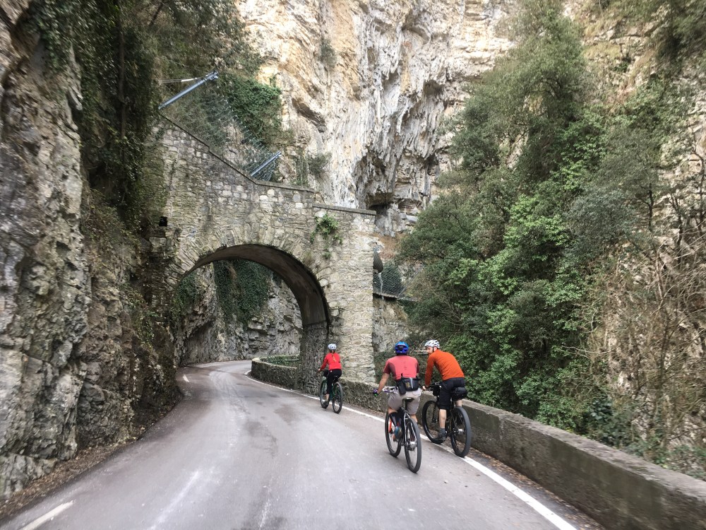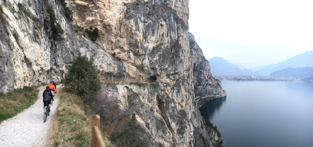La domenica siamo partiti lungo “la strada più bella del mondo”, una ripida salita che dalle rive del lago di Garda sale tra gole e canyon lungo le pareti della montagna per poi diventare sterrata, una vecchia strada militare che tra sassi e gallerie porta al passo Nota.