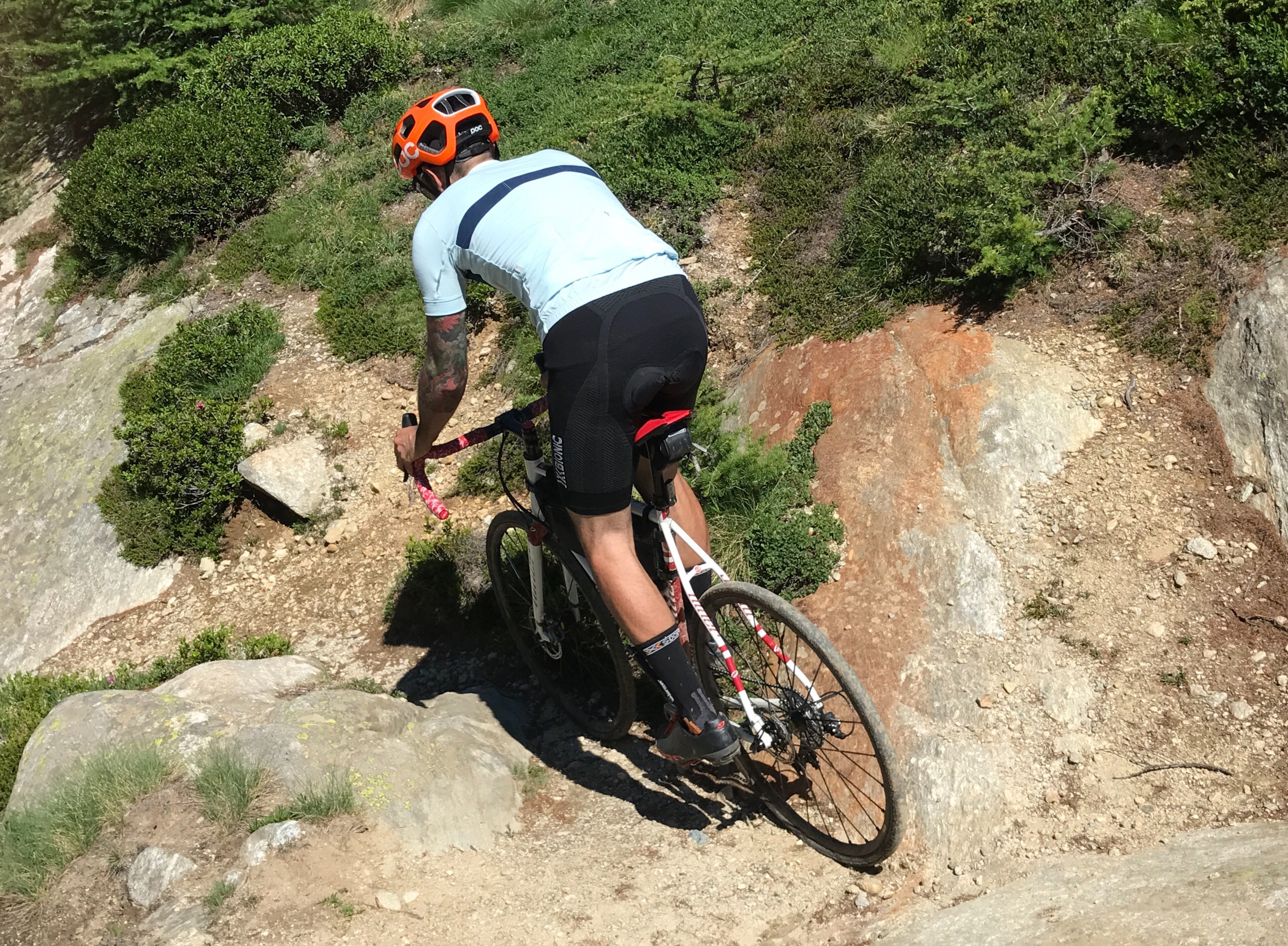 Ecco, ho detto bene: tre imbecilli! Sulle rocce lisce con delle bici gravel (Herik con la tarmac, soprannominata per l’occasione “gravelmac”) a fare le sponde, come dei Brumotti del giovedì! Uno spasso!!