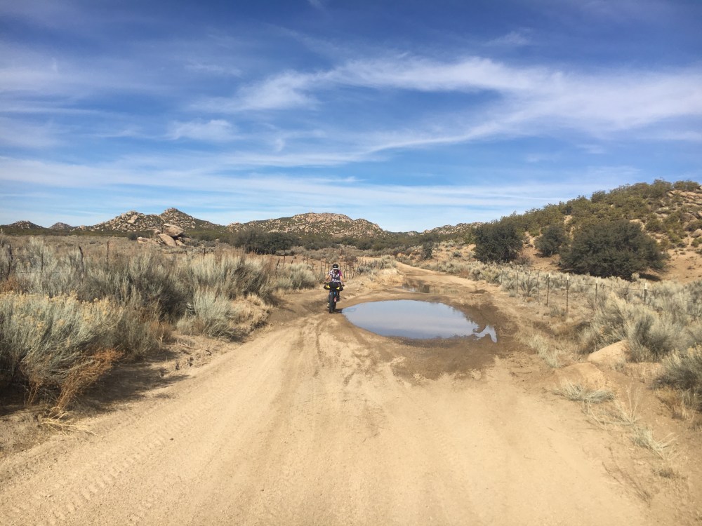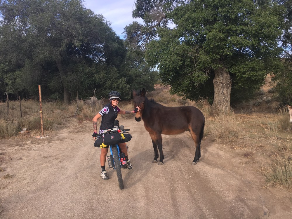 Circa 8 km di salita per risvegliarci bene, attraversando un lungo canyon verdeggiante, Canon Manteca appunto, con alberi a foglia larga e il greto del torrente sassoso e in secca; cavalli allo stato brado ci guardano curiosi ma non si spaventano più di tanto. Saliamo fino a quota 800m dove, improvvisamente, il panorama cambia radicalmente: un infinito altipiano ci si presenta davanti e dovremo attraversarlo tutto, percorrendo l’unica pista presente, una traccia di sabbia che lo attraversa sul suo lato più lungo. Ai lati della pista alcuni radi alberi offrono un po’ d’ombra ma la vegetazione è comunque bassa e brulla, latemperatura è abbastanza calda ma l’aria in faccia ci aiuta a non patire troppo il caldo.