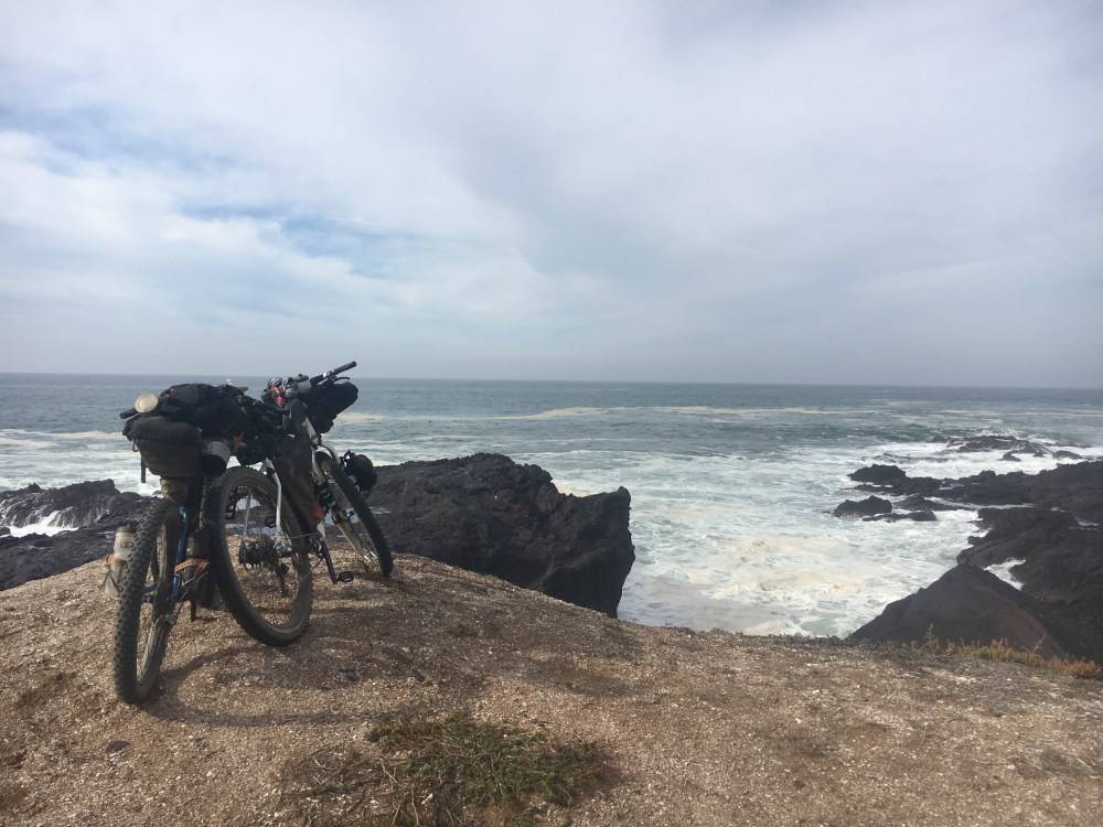 Nella piazzola dove siamo fermi a contemplare tutto ciò, da un fuoristrada parcheggiato con tavole da surf sul tetto e come delle mtb sul portabici posteriore, esce una donna con una cane, ci viene incontro e Ibiza a parlare con noi: è un militare in congedo con la passione del surf e ci conferma che questo posto è un paradiso per i surfisti americani che qui passano l’inverno a cercare onde perfette. A tratti anche lei e il suo compagno pedalano alcuni pezzi del nostro percorso ma non sono allenati per affrontarlo tutto intero così, con la jeep, ne approfittano per fare anche un po’ di surf… non male, per nulla, come opzione!