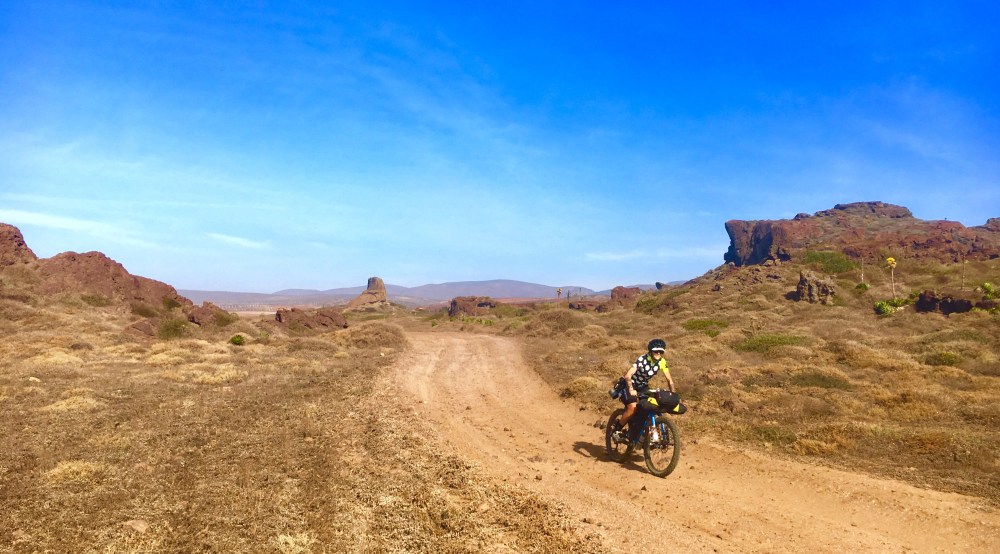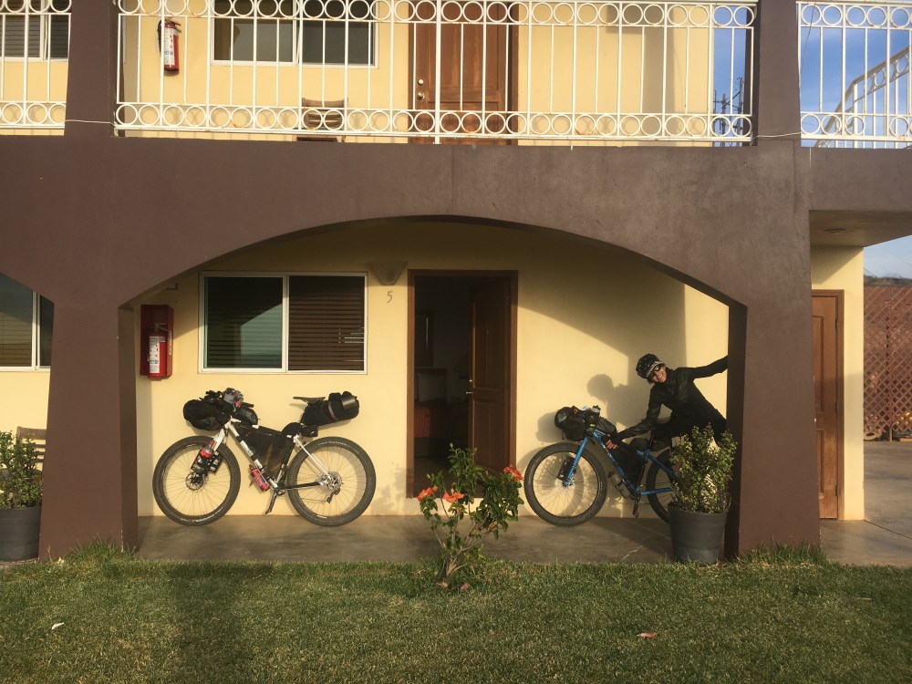 Siamo a Punta Colònet, fine della prima parte del nostro viaggio. Da qui lasceremo per qualche km il percorso ufficiale per ragioni di tempo e percorreremo la MEX1 fino a Vicente Guerrero. Ad oggi abbiamo percorso 400 km e scalato 7000m positivi di dislivello, quasi tutti su sabbia fino ad ora e la nostra media giornaliera di km è troppo vicina a quella limite minima che ci eravamo prefissati di 70, quindi, come avevamo programmato, taglieremo alcune parti del percorso per tenerci del margine in caso di imprevisti.