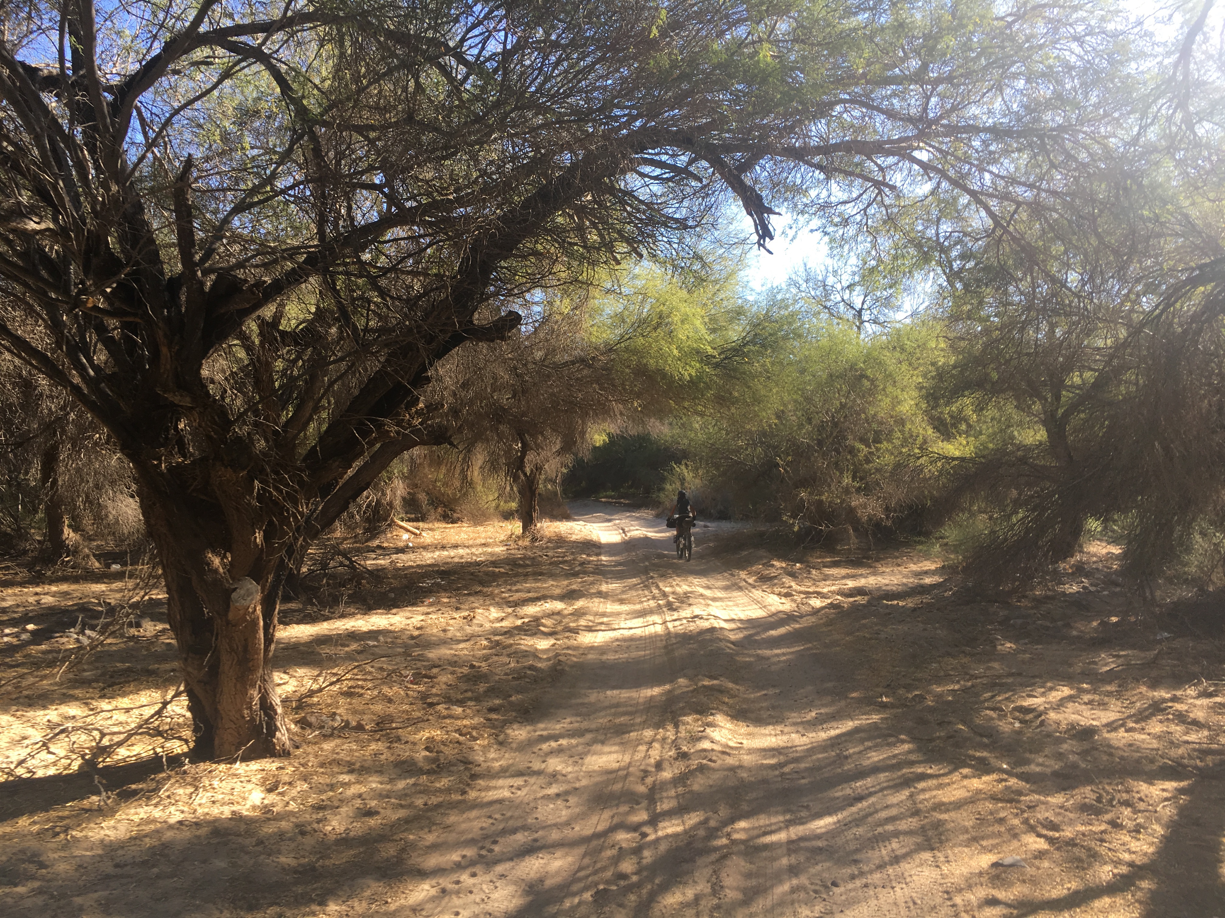 La pendenza è piacevole mentre siamo circondati dalla Sierra de San Borja e la Sierra el Principio, le due catene montuose che rispettivamente alla nostra destra e alla nostra sinistra, ma quello che continua a frenarci è sempre il vento, tanto da farci percepire una pendenza che in fin dei conti non c’è.