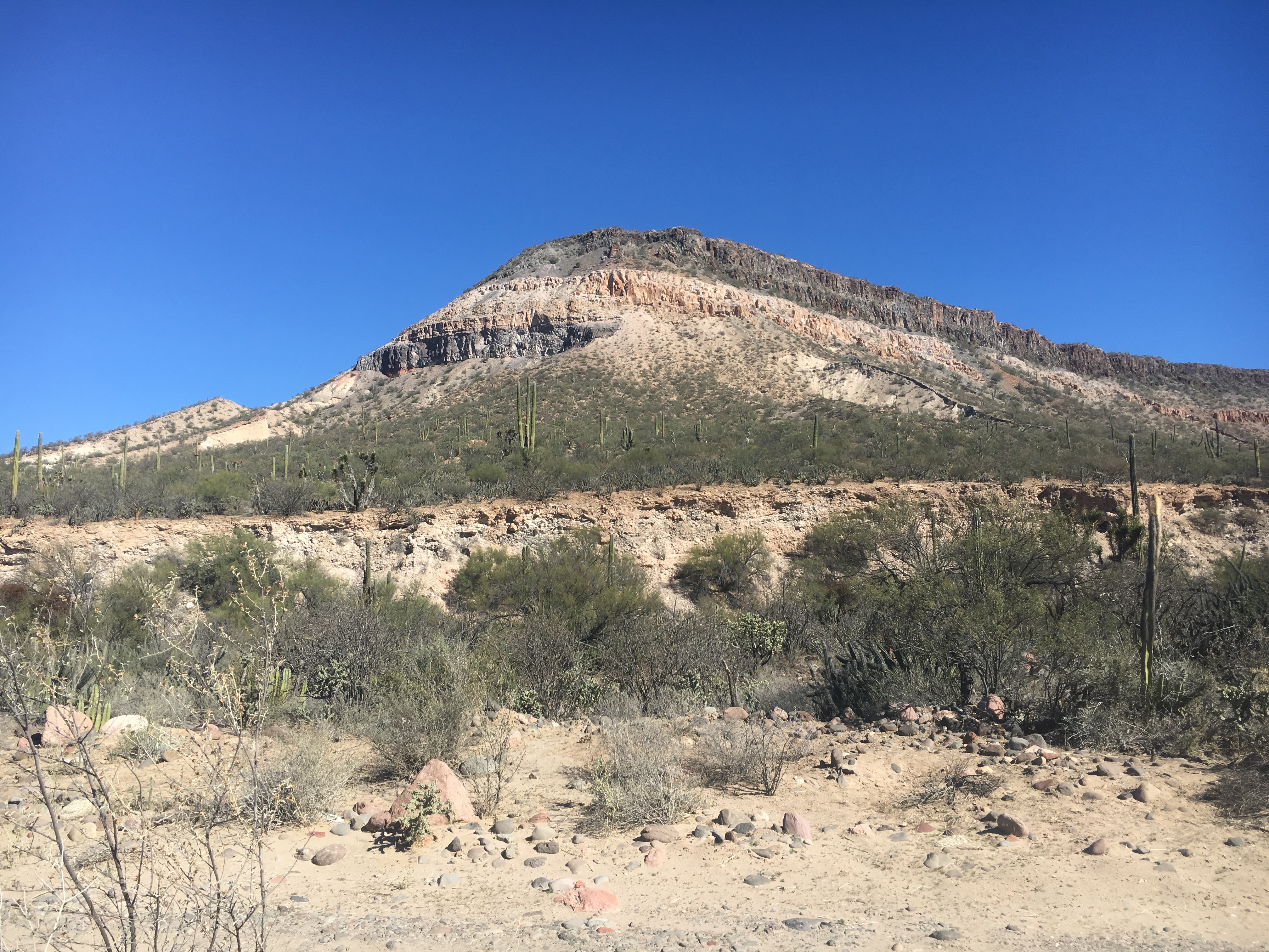 Dalla cima della collina si può vedere tutta la baia, la sua cittadina, Bahìa De Los Angeles e lui, il mar ti cortèz, una tavola dal color turchese apparentemente placida e tranquilla. All’orizzonte, in lontanaza, vediamo per la prima volta la costa del Messico!