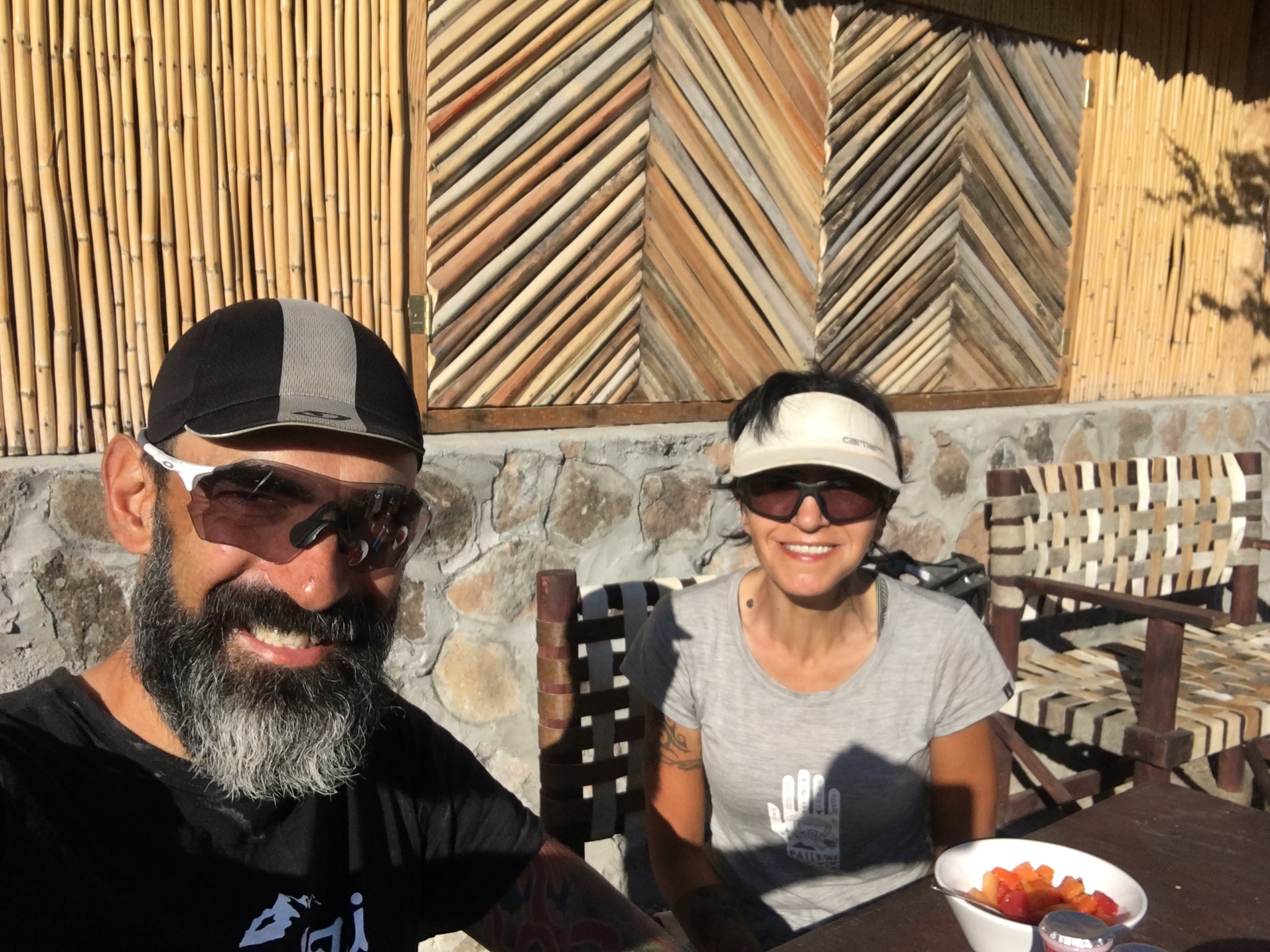 Chiediamo se hanno acqua per noi e ci riempiono le nostre quattro borracce ormai vuote invitandoci a colazione. Il gruppo a cavallo è già partito e ci sono “gli avanzi” della colazione dei loro clienti.